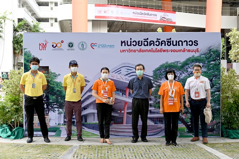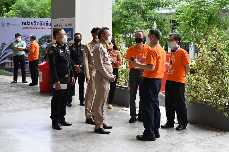 เมื่อวันที่ 7 มิถุนายน 2564 ณ อาคารการเรียนรู้พหุวิทยาการ ชั้น 1 มหาวิทยาลัยเทคโนโลยีพระจอมเกล้าธนบุรี (มจธ.) นายธนาชิต ชูติกาญจน์ ผู้อำนวยการเขตทุ่งครุ ลงพื้นที่ตรวจเยี่ยมการดำเนินงาน “หน่วยฉีดวัคซีนถาวรมหาวิทยาลัยเทคโนโลยีพระจอมเกล้าธนบุรี” โดยมี รศ. ดร.สุวิทย์ แซ่เตีย อธิการบดี มจธ. ผศ. ดร.ประเสริฐ คันธมานนท์ หัวหน้าหน่วยฉีดวัคซีนถาวร มจธ. และคณะผู้บริหาร ให้การต้อนรับ พร้อมประสาน กทม. จัดสรรวัคซีนเพิ่มเติมเพื่อให้บริการประชาชนในพื้นที่