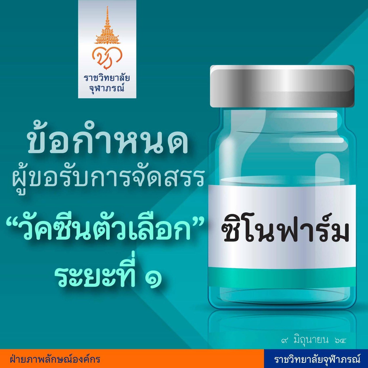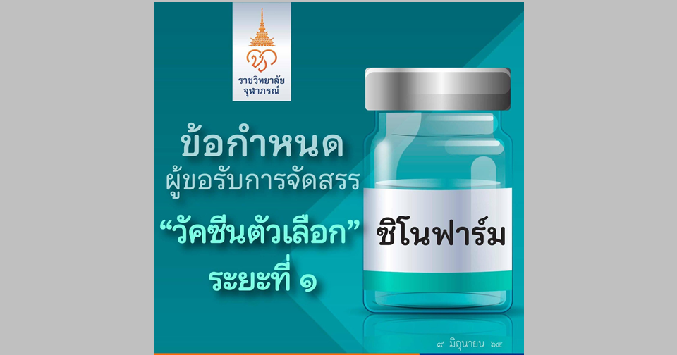 เพจเฟซบุ๊ก ราชวิทยาลัยจุฬาภรณ์ โพสต์เผยแพร่ ข้อกำหนดผู้ขอรับการจัดสรร “วัคซีนตัวเลือก” ซิโนฟาร์ม ระยะที่ 1