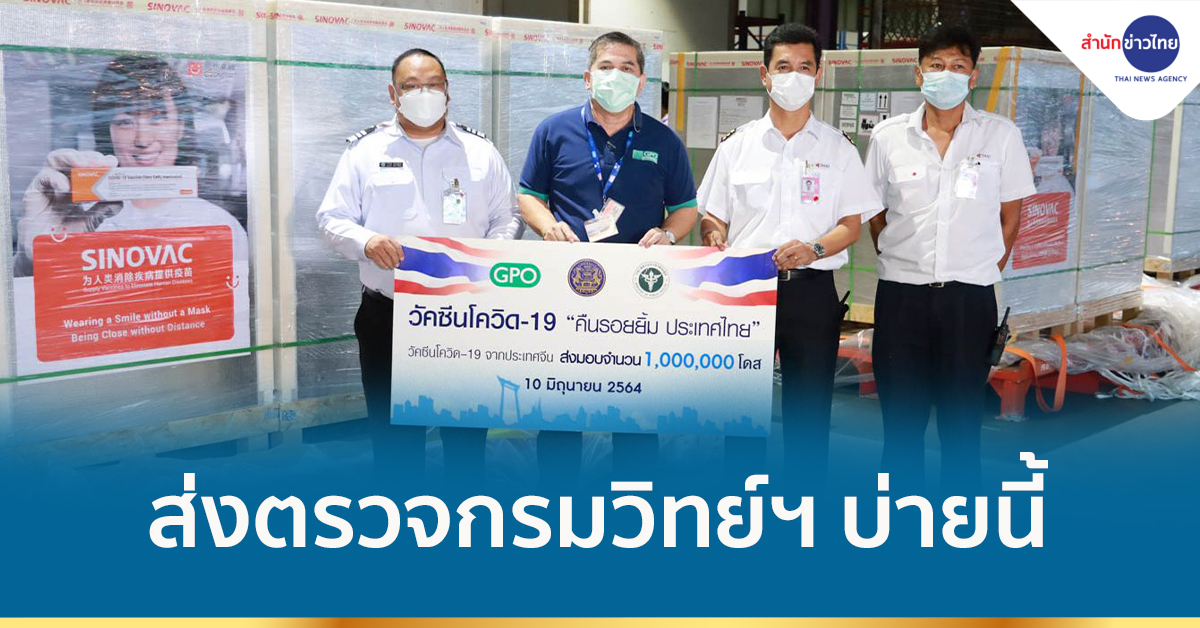 นพ.เกียรติภูมิ วงศ์รจิต ปลัดกระทรวงสาธารณสุข (ปลัด สธ.) กล่าวว่า ในวันนี้ (10 มิ.ย.) ประเทศไทยได้รับวัคซีนซิโนแวคจากประเทศจีน จำนวน 1 ล้านโดส ลงเครื่องบินมาแล้วตั้งแต่เวลา 05.00 น.ที่ผ่านมา ส่วนลอตต่อไปยังไม่ทราบวันที่ชัดเจน แต่ส่วนใหญ่ทางบริษัทผู้ผลิตจะบอกในวันที่ใกล้ ๆ กับช่วงที่จะขนส่งมา