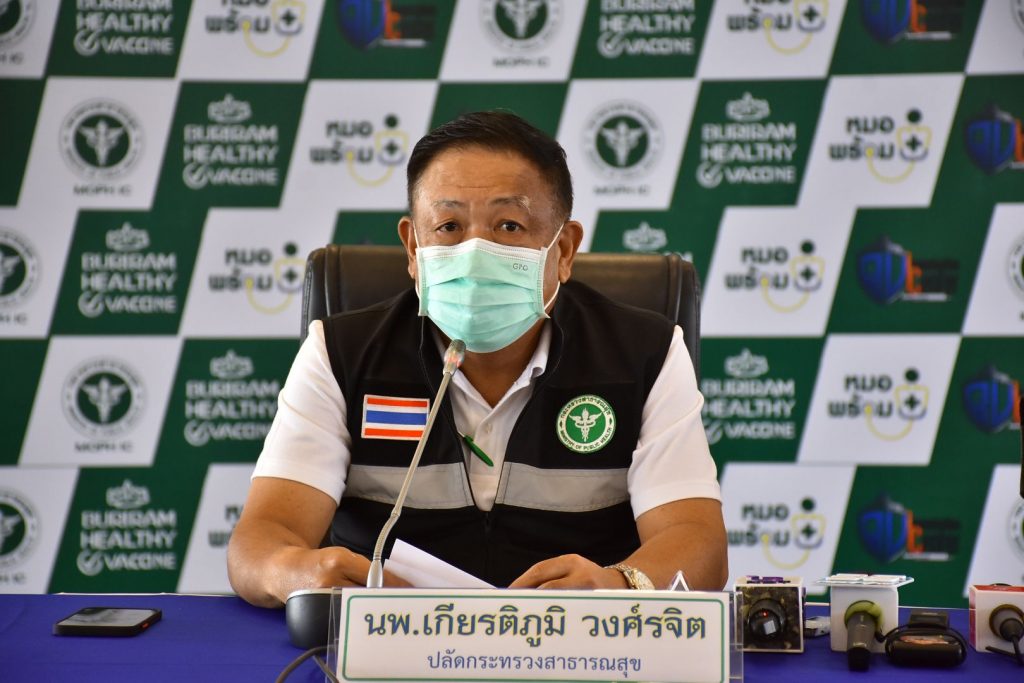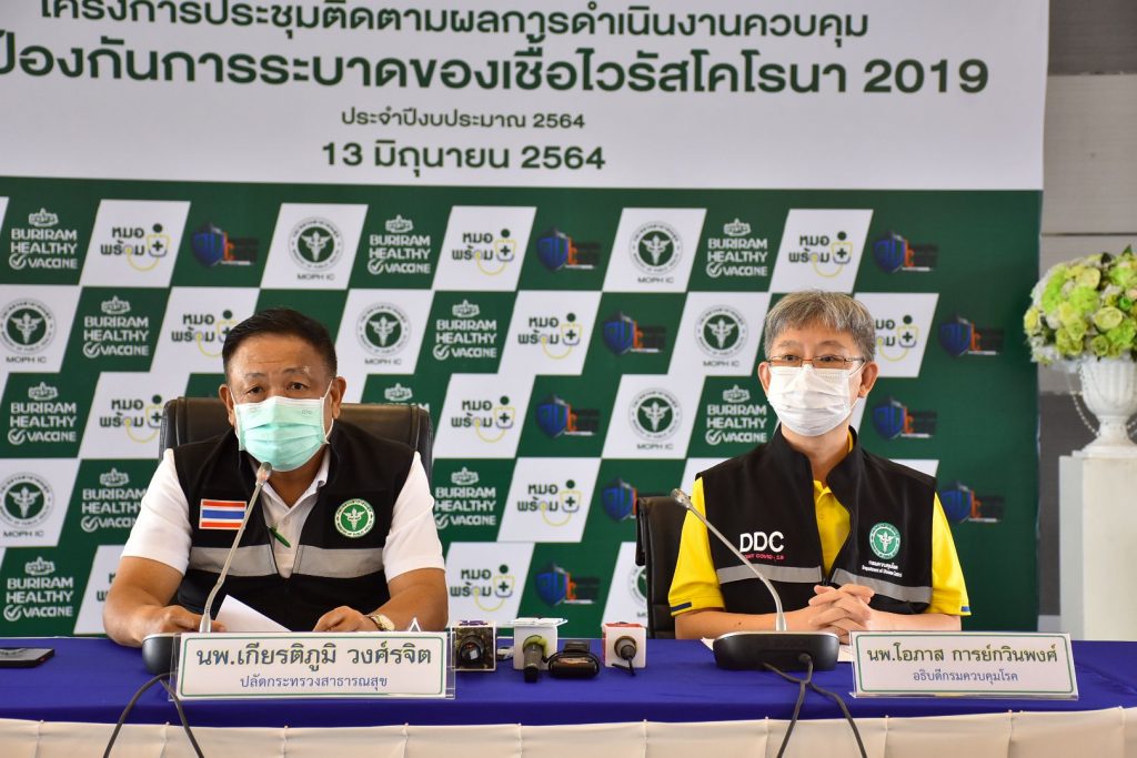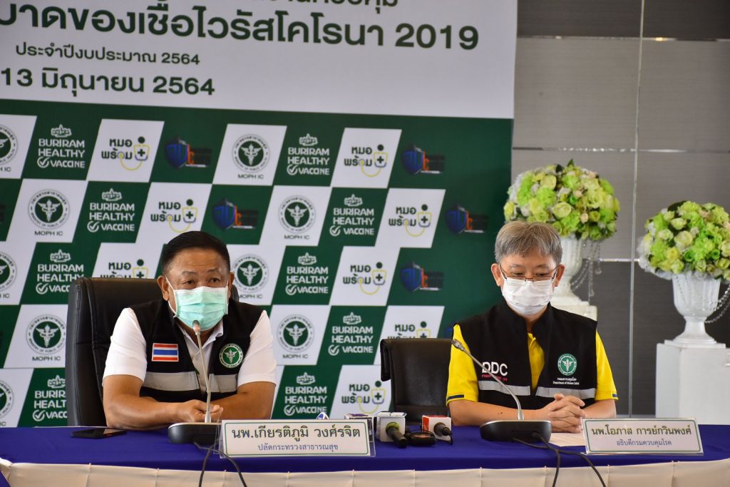 วันนี้ (13 มิถุนายน 2564) ที่ สนามช้างอินเตอร์เนชันแนล เซอร์กิต จ.บุรีรัมย์ นายแพทย์เกียรติภูมิ วงศ์รจิต ปลัดกระทรวงสาธารณสุข นายแพทย์โอภาส การย์กวินพงศ์ อธิบดีกรมควบคุมโรค แถลงข่าวชี้แจงประเด็นการจัดสรรวัคซีนโควิด 19 โดยนายแพทย์เกียรติภูมิ กล่าวว่า จากกรณีที่โรงพยาบาลหลายแห่งประกาศเลื่อนการฉีดวัคซีนโควิด 19 เนื่องจากไม่ได้รับการจัดสรรวัคซีนจากกระทรวงสาธารณสุข ขอชี้แจงว่า ในการดำเนินงานบริหารจัดการวัคซีนกระทรวงสาธารณสุข เป็นผู้จัดหา โดยองค์การเภสัชกรรม และกรมควบคุมโรคเป็นผู้กระจายวัคซีนตามแผนที่ศบค. วางไว้ ได้แก่ ใน 76 จังหวัด และกทม., ประกันสังคม, อธิการบดีแห่งประเทศไทย (ทปอ.) 11 สถาบัน, องค์กรภาครัฐ และสำรองไว้สำหรับสถานการณ์ฉุกเฉินมากกว่า 2 แสนโดส โดยตั้งเป้าหมายว่าก่อนเดือนกันยายน 2564 คนไทยประมาณร้อยละ 60-70 จะได้รับการฉีดวัคซีนเข็มแรก เพื่อให้ประชาชนเกิดภูมิคุ้มกันในเดือนตุลาคม และทำการเปิดประเทศต่อไป