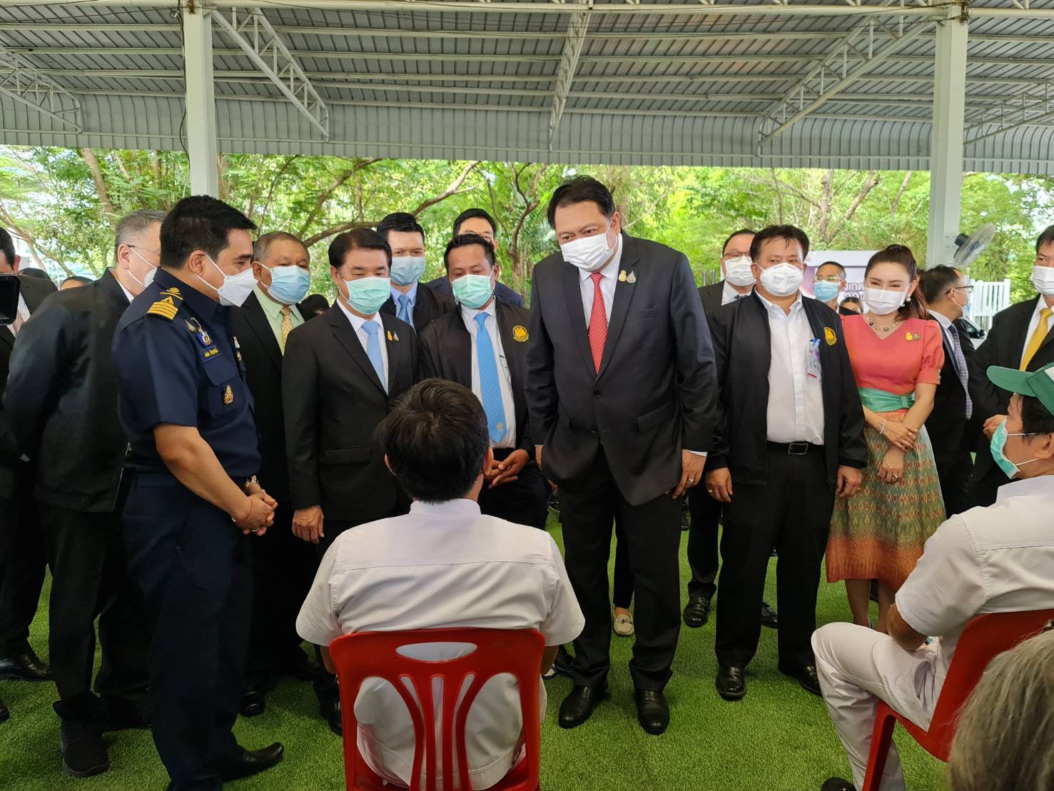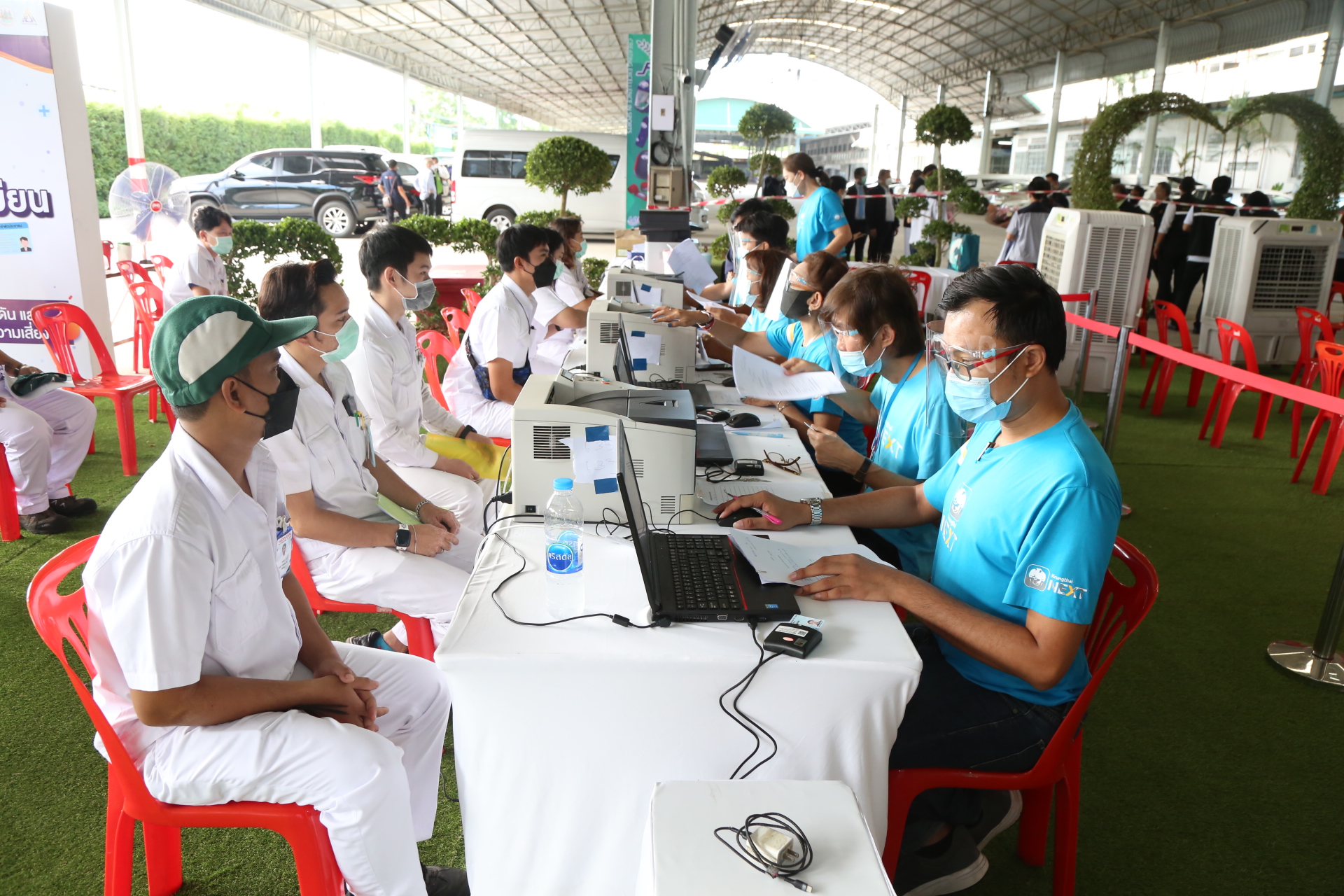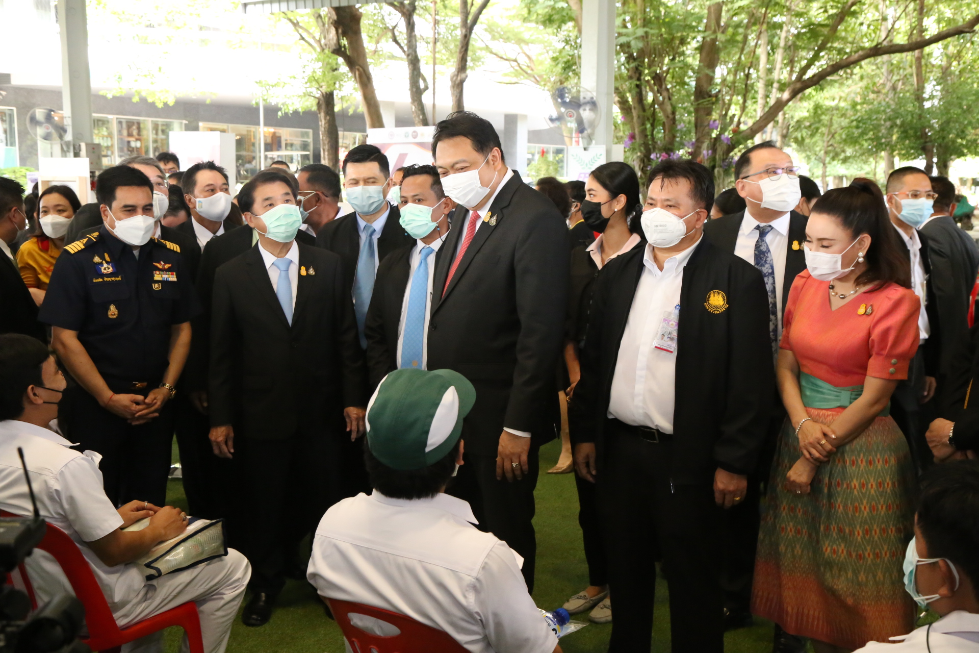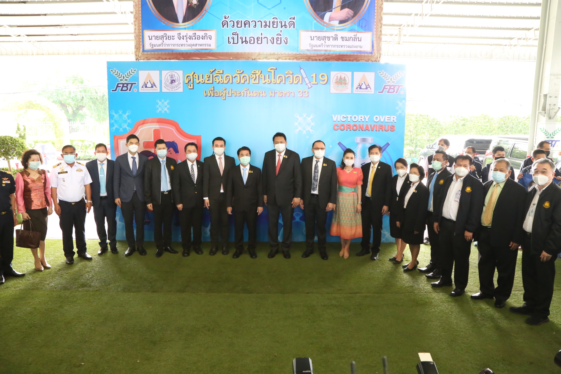นายสุชาติ ชมกลิ่น รัฐมนตรีว่าการกระทรวงแรงงาน พร้อมด้วยนายสุริยะ จึงรุ่งเรืองกิจ รัฐมนตรีว่าการกระทรวงอุตสาหกรรม และคณะตรวจเยี่ยมการให้บริการฉีดวัคซีนโควิด -19 สำหรับผู้ประกันตนมาตรา 33 ในพื้นที่กรุงเทพมหานคร ณ ศูนย์ฉีดศูนย์บริษัท โรงงานฟุตบอลไทย สปอร์ตติ้ง กู๊ดส์ จำกัด ถ.ฉลองกรุง ซึ่งอยู่ในความรับผิดชอบของสำนักงานประกันสังคมกรุงเทพมหานครเขตพื้นที่ 10 มีศักยภาพการฉีดวันละ 1,000 คน มีทีมแพทย์ พยาบาล เภสัชกรจากโรงพยาบาลนวมินทร์ 1 เป็นผู้ดำเนินการ