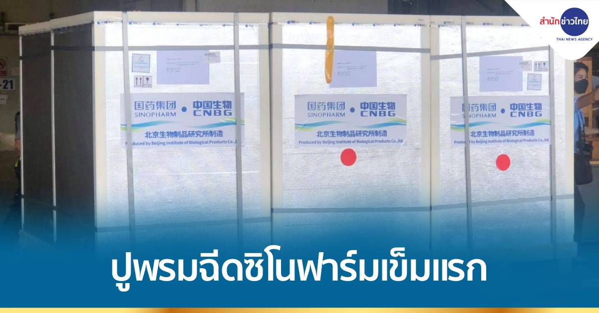 สนามบินสุวรรณภูมิ 20 มิ.ย.-วัคซีนทางเลือก ซิโนฟาร์ม ถึงไทยแล้ว 1 ล้านโดส ใช้เวลาตรวจรับรองรุ่นการผลิต 2 วัน จากนั้นกระจายฉีดพร้อมกันทั่วประเทศ 25 มิ.ย.นี้ โดยให้เป็นการปูพรมฉีดเข็มแรกทั้งหมด จากนั้นวัคซีนลอตถัดมาจะเข้าไทยต้นเดือน ก.ค. จำนวน 1 ล้านโดส