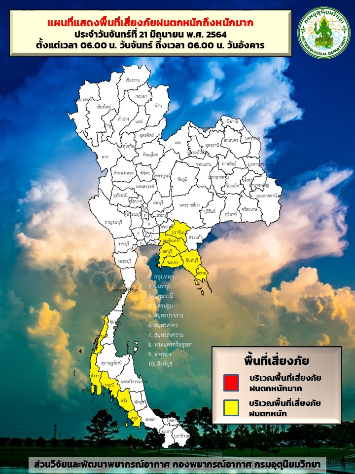 กรมอุตุฯ 21 มิ.ย. – กรมอุตุฯ เผยทั่วไทยมีฝนเพิ่มขึ้น กับมีฝนตกหนักบางแห่ง บริเวณภาคตะวันออก และภาคใต้ ส่วนกรุงเทพฯ และปริมณฑล ฝนฟ้าคะนอง 40% ของพื้นที่