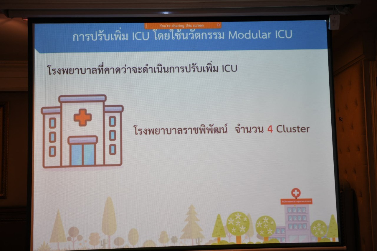 ผู้ว่าฯ กทม.กล่าวว่า จากสถานการณ์การแพร่ระบาดของโควิด-19 ที่ขยายวงกว้างและมีผู้ติดเชื้อเพิ่มขึ้นเป็นจำนวนมากในพื้น กทม.เพื่อเพิ่มศักยภาพดูแลรักษาผู้ป่วย รวมทั้งป้องกันและควบคุมสถานการณ์การแพร่ระบาดของโรค กทม.จะเพิ่มเตียงสำหรับรองรับผู้ป่วยที่อาการรุนแรง (สีแดง) ซึ่งได้รับความร่วมมือจากบริษัท ปูนซีเมนต์ไทย จำกัด (SCG) โดยใช้นวัตกรรม Modular ICU ในการปรับเพิ่มห้อง ICU (ห้องความดันลบ) จะใช้พื้นที่ของศูนย์การเรียนรู้ของโรงพยาบาลราชพิพัฒน์ เขตทวีวัฒนา เบื้องต้นจะปรับเพิ่มห้องความดันลบ จำนวน 4 อาคาร พร้อมติดตั้งระบบความปลอดภัยด้านอื่นๆ อาทิ ระบบกำจัดน้ำเสีย และระบบกำจัดขยะ เป็นต้น สามารถรองรับผู้ป่วยได้ 40 เตียง ขณะนี้กำลังดำเนินการโดยตั้งเป้าหมายให้แล้วเสร็จสมบูรณ์ภายใน 5 สัปดาห์ คาดว่าภายในวันที่ 10 ก.ค.64 จะเริ่มเปิดรับผู้ป่วยเข้ารับการรักษา 10 เตียง หลังจากนั้นเปิดจะรับผู้ป่วยเพิ่มขึ้นสัปดาห์ละ 10 เตียงอย่างต่อเนื่องจนครบ 40 เตียง ทั้งนี้ กทม. ต้องขอบคุณ SCG ที่ได้ร่วมบริจาคห้องความดันลบ จำนวน 10 เตียงจากจำนวน 40 เตียง เพื่อใช้ดูแลรักษาผู้ป่วยโควิดที่อาการรุนแรง(สีแดง)