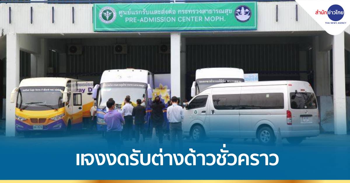 ศูนย์แรกรับและส่งต่อกระทรวงสาธารณสุข ทำหน้าที่ตรวจคัดกรอง ส่งต่อจากการประสานเข้ามาทางสายด่วน 1668, 1669, 1330 การค้นหาเชิงรุกในชุมชน (Active Case Finding) และผู้ป่วยที่ผ่านการประสานงานมาก่อนล่วงหน้า จากนั้นจะทำการส่งต่อเข้ารับการรักษาตามอาการตามระบบ ทั้งโรงพยาบาลสังกัดสำนักงานปลัดกระทรวงสาธารณสุข สังกัดกรมการแพทย์ กรุงเทพมหานคร เหล่าทัพ โรงเรียนแพทย์ เครือข่ายโรงพยาบาลเอกชน Hospitel หรือโรงพยาบาลสนามต่าง ๆ ทั้งนี้ ขอย้ำว่าหากจะเดินทางมาที่ศูนย์แรกรับและส่งต่อ กระทรวงสาธารณสุขขอให้ประสานงานมาที่เบอร์ 09 5739 3922 ก่อนเพื่อสอบถามรายละเอียด เพื่อให้สามารถบริหารจัดการอย่างเป็นระบบ ลดการแพร่กระจายเชื้อ