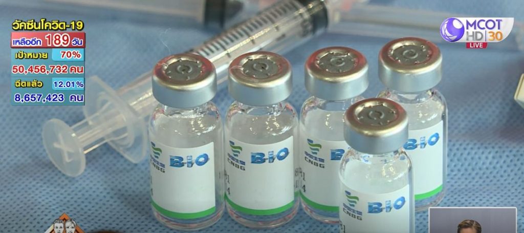 ข้อมูลการฉีดวัคซีนล่าสุดของประเทศไทย ณ วันที่ 24 มิถุนายน 2564 จัดสรรวัคซีนแล้วทั้งหมด 10,600,000 โดส จำนวนการฉีดวัคซีนสะสม 8,657,423 คน ใน 77 จังหวัด แบ่งเป็นเข็มแรก 6,206,353 โดส (9.4% ของประชากร) เข็มสอง 2 2,451,070 โดส (3.7% ของประชากร)
