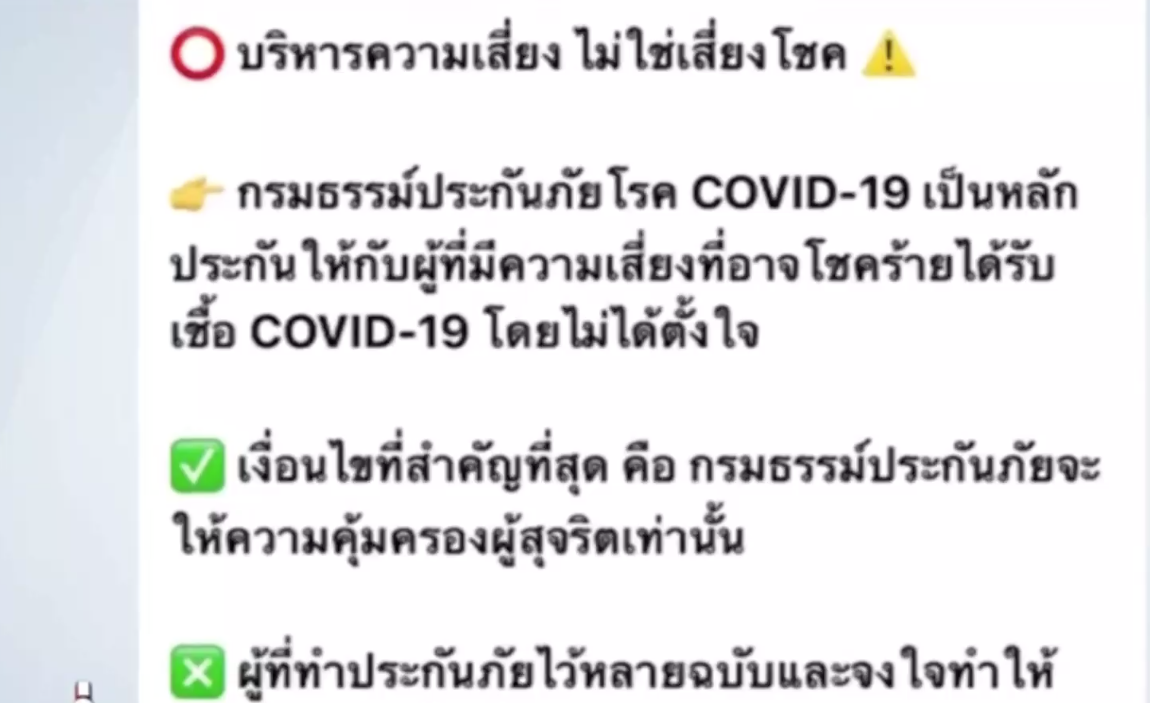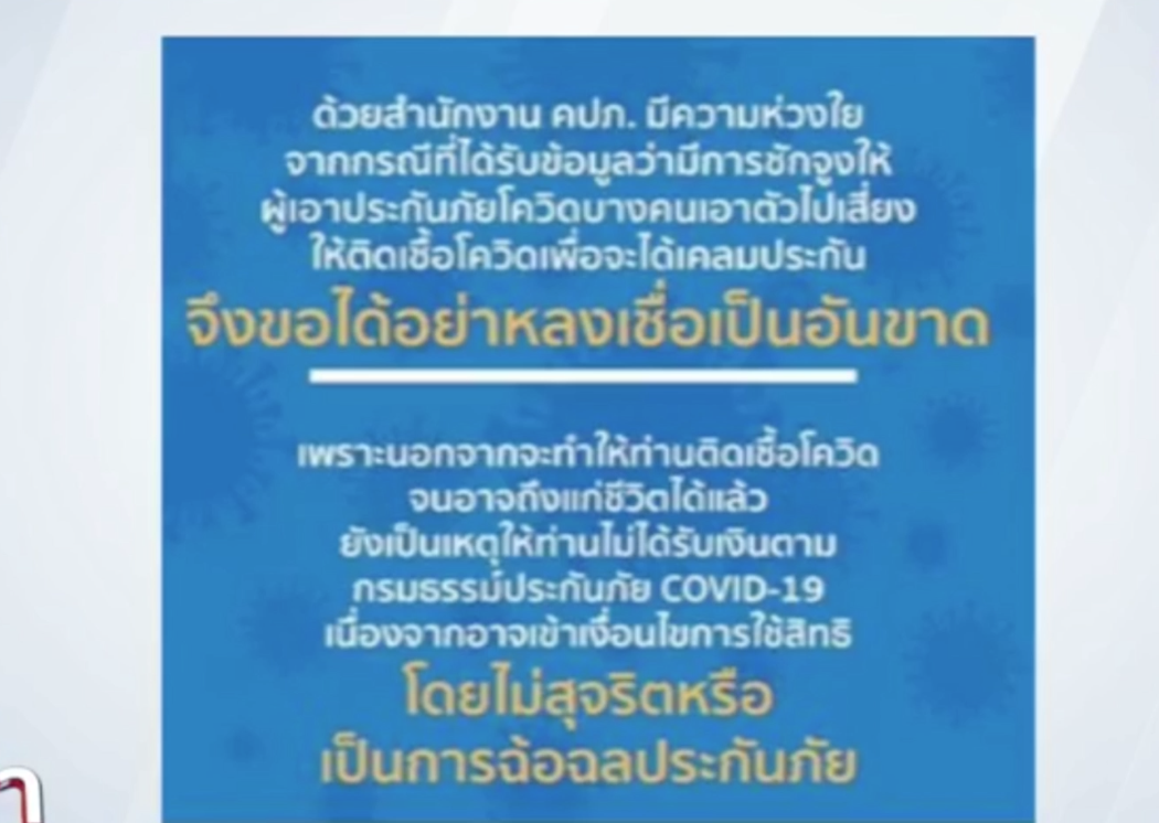 ทั้งนี้ก่อนหน้านี้มีการแชร์กันในโลกโซเชียลอย่างเผยแพร่ว่า มีคนตั้งใจเข้าไปในพื้นที่เสี่ยงเพื่อติดโควิด-19 เอาเงินประกันนั้น เช่น บางชุมชนที่โควิดระบาดหนักติดกันทั้งบ้าน ทั้งซอย ได้เงินประกัน คนละ 1-7 แสนบาทบ้าง บางครอบครัว 5 คน คนละแสนตั้งตัวได้เลย และยังมีวัยรุ่นคนหนึ่งดีใจกักตัว 14 วัน กลับมาจะเอาเงินไปทำนม บางคนถึงขนาดเอาแมสก์คนป่วยมาใส่ต่อ กินน้ำติดน้ำลายคนป่วย.-สำนักข่าวไทย