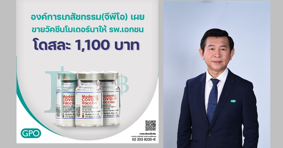 อภ.30 มิ.ย.-องค์การเภสัชกรรม(จีพีโอ) เผยขายวัคซีนโมเดอร์นาให้โรงพยาบาลเอกชน โดสละ 1,100 บาท โดยจะนำเข้ามาในช่วงแรกในไตรมาส 4/2564 จำนวน 3.9 ล้านโดส และไตรมาสที่ 1/2565 จำนวน 1.1 ล้านโดส