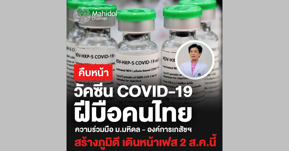 เพจเฟซบุ๊ก Mahidol Channel โพสต์ความคืบหน้าวัคซีน COVD-19 ฝีมือคนไทย “HXP-GPOVac” ผลการทดลองในคนระยะแรก สามารถสร้างภูมิคุ้มกันดี โดยเตรียมทดลองระยะที่ 2 ในเดือนสิงหาคมนี้