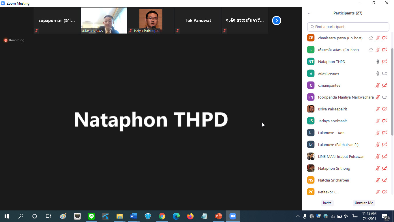 ส่วนผู้แทนบริษัท ไปรษณีย์ไทย ดิสทริบิวชั่น จำกัด ระบุว่าบริษัทไม่ได้มีแพล็ทฟอร์มร้านอาหารโดยตรงแต่ก็มีรถขนส่งกระจายทั่วประเทศ ดังนั้นขอนำข้อมูลการประชุมในครั้งนี้ไปหารือกับทีมงานเพื่อจัดทำข้อเสนอแนะและจะหารือมายัง สปสช. ต่อไป