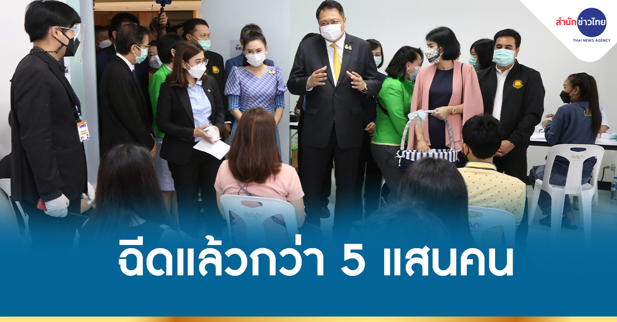 ก.แรงงาน 2 ก.ค.-รมว.แรงงาน ลงพื้นที่ตรวจเยี่ยมศูนย์ฉีดวัคซีนโควิด-19 ให้แก่ผู้ประกันตน ม.33 เผยตั้งแต่ 7– 30 มิ.ย.64 ได้รับการฉีดวัคซีนแล้ว 504,242 คน คิดเป็นร้อยละ 99.31 ของวัคซีนที่ได้รับจัดสรร
