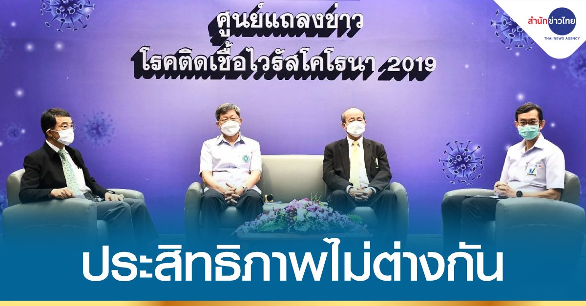 สธ. 2 ก.ค.-ผู้ทรงคุณวุฒิใน คกก.โรคติดต่อแห่งชาติ แจงประสิทธิภาพวัคซีน 3 ชนิด ไม่ต่างกัน ทั้งเชื้อตาย ไวรัลเวกเตอร์ และ m-RNA ชี้เชื้อไวรัสกลายพันธุ์ทำประสิทธิภาพลดลง ซิโนแวค-แอสตรา-ไฟเซอร์-โมเดอร์นา แต่ยังช่วยลดตาย ป่วยรุนแรง ฉะนั้นอย่าสนยี่ห้อให้รีบฉีด
