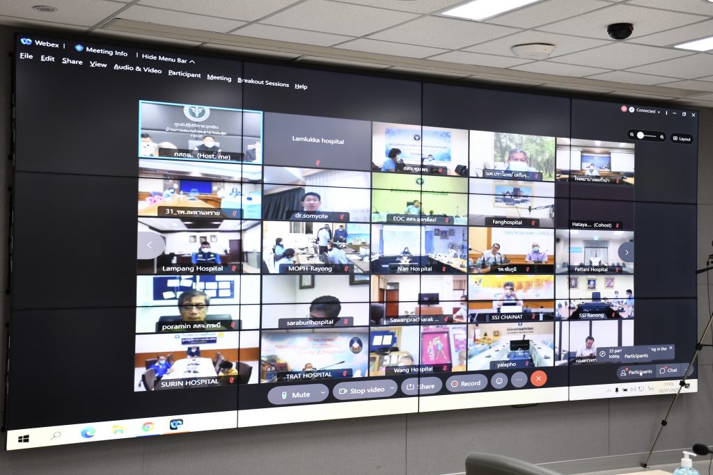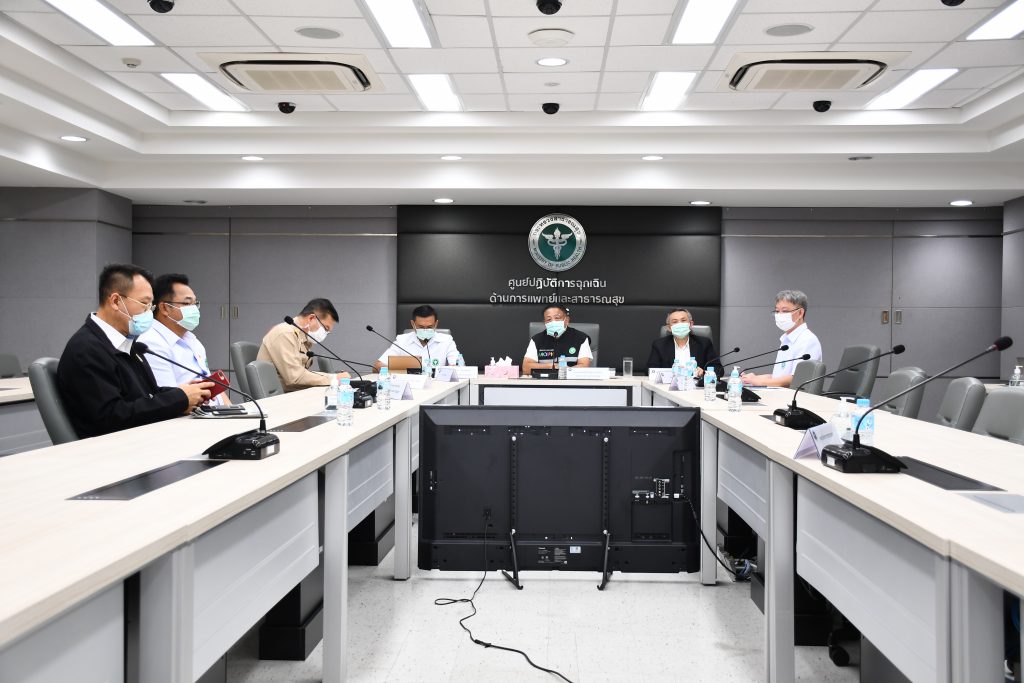วันนี้ (2 กรกฎาคม 2564) ที่ศูนย์ปฏิบัติการฉุกเฉินด้านการแพทย์และสาธารณสุข กระทรวงสาธารณสุข จ.นนทบุรี นพ.เกียรติภูมิ วงศ์รจิต ปลัดกระทรวงสาธารณสุข นพ.ธงชัย กีรติหัตถยากร รองปลัดกระทรวงสาธารณสุข นพ.สุระ วิเศษศักดิ์ รองปลัดกระทรวงสาธารณสุข นพ.โอภาส การย์กวินพงศ์ อธิบดีกรมควบคุมโรค ประชุมทางไกลผ่านระบบวิดีโอ (Web Conference) กับผู้ตรวจราชการกระทรวงสาธารณสุข นายแพทย์สาธารณสุขจังหวัด และผู้อำนวยการโรงพยาบาลศูนย์ โรงพยาบาลทั่วไปทั่วประเทศ