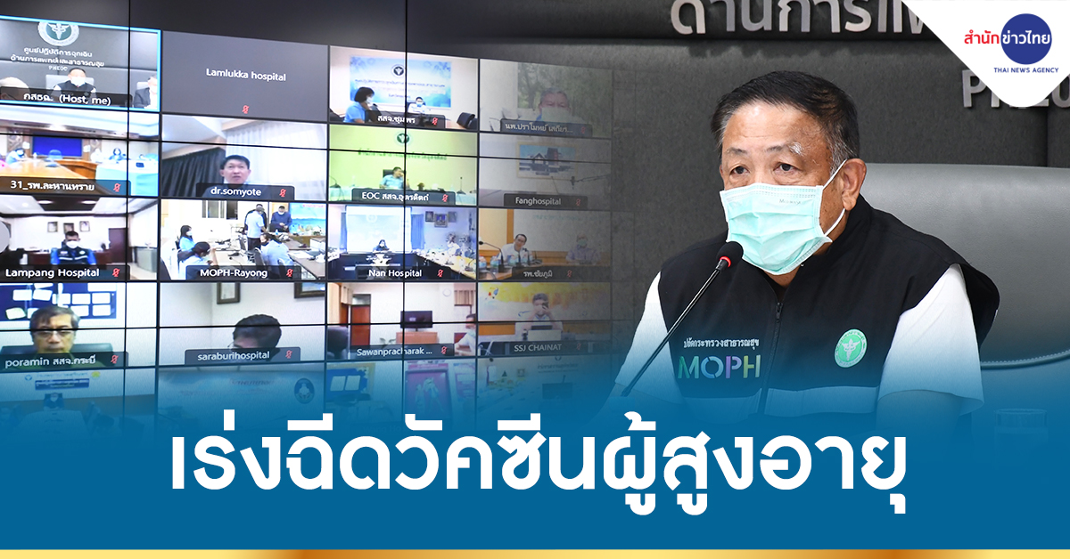 กรุงเทพฯ 2 ก.ค.- ปลัดกระทรวงสาธารณสุขประชุมทางไกลกับนายแพทย์สาธารณสุขจังหวัด ผู้อำนวยการโรงพยาบาลศูนย์ โรงพยาบาลทั่วไป โรงพยาบาลชุมชน ให้เร่งฉีดวัคซีนโควิด 19 ให้กับกลุ่มผู้สูงอายุ ผู้ป่วย 7 โรคเรื้อรัง สื่อสารประชาชนให้ป้องกันตนเอง สวมหน้ากากอนามัยเมื่ออยู่บ้าน ป้องการแพร่เชื้อในครอบครัว
