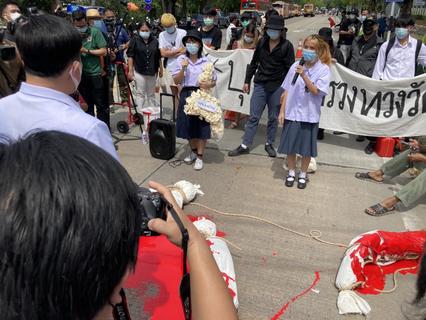สธ.7ก.ค.-กลุ่มเด็กเยาวชนบุก สธ.เรียกร้องวัคซีนคุณภาพ นำหุ่นจำลอง สาดสี เหตุการณ์ผู้ป่วยเสียชีวิตแต่เจรจาล่ม เพราะใช้ถ้อยคำรุนแรงอ้างเครียดสถานการณ์