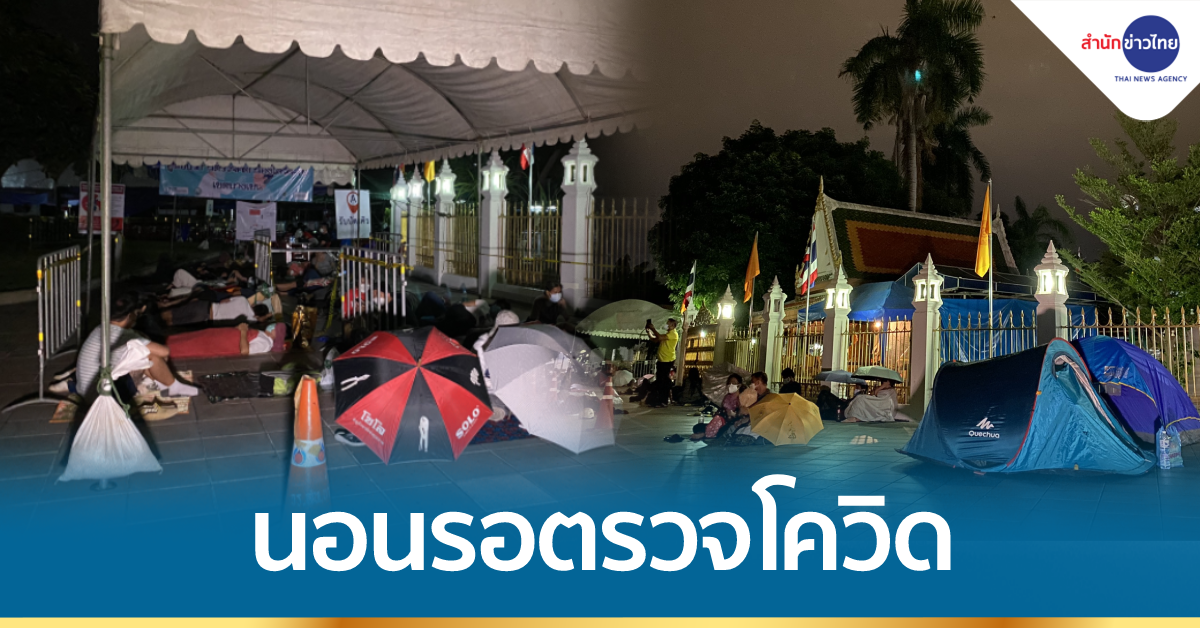 เมื่อคืนที่ผ่านมาเวลา 01.30 น. ผู้สื่อข่าวสำนักข่าวไทย ลงพื้นที่วัดพระศรีมหาธาตุมหาวิหาร บางเขน หลังเปิดเป็นจุดตรวจ “โควิด-19” เชิงรุกฟรีสำหรับประชาชนคนไทยทั่วไป โดยรับวอล์กอินวันละ 900 คน ล่าสุดปรากฏว่าพบประชาชนนำเต็นท์มากางและนอนรอตรวจหาเชื้อตั้งแต่เที่ยงคืนที่ผ่านมา เพื่อรอรับบัตรคิวที่จะเริ่มแจกในเวลา 06.00 น.