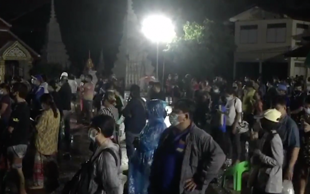 บรรยากาศการรอคิวตรวจโควิดที่วัดบางขุนเทียนนอก เขตจอมทอง เมื่อคืนนี้มีประชาชนกว่า 300 คนแห่มาค้างคืนรอรับบัตรคิว โดยช่วงที่ฝนตกประชาชนได้นำขวดน้ำ ขวดแอลกอฮอล์ รองเท้า เก้าอี้ วางเรียงต่อคิวแทน ขณะที่เจ้าหน้าที่นำไฟมาติดตั้งดูแลประชาชน พร้อมแจ้งว่าบัตรคิวที่แจกในเช้าวันนี้ น่าจะมีไม่เกิน 800ใบ และผู้ที่ได้รับบัตรคิวจะนัดหมายให้มาตรวจจริงในวันที่ 11 กรกฎาคม