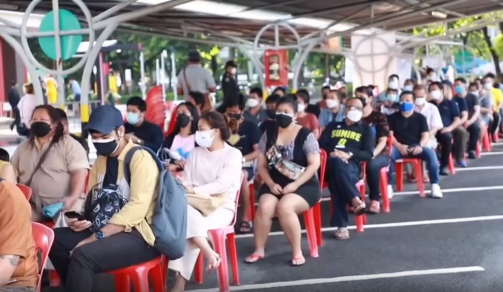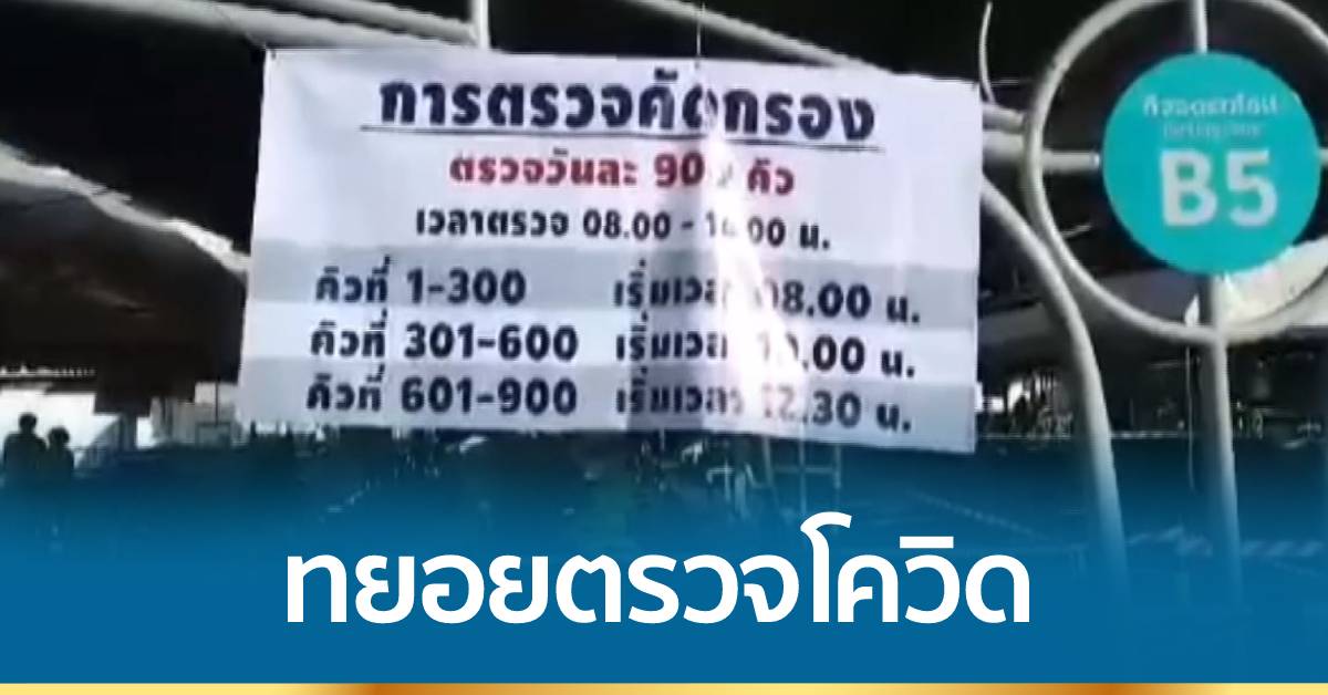 ประชาชนที่จองคิวการตรวจคัดกรองโควิด-19 ที่ห้างเทสโก้ โลตัส สาขารามอินทรา เขตลาดพร้าว วันละ 900 คน ซึ่งเต็มตั้งแต่เปิดจองเมื่อวานนี้แล้ว ได้ทยอยเข้ารับการตรวจตามคิวอย่างต่อเนื่อง โดยเจ้าหน้าที่สำนักงานเขตลาดพร้าว ได้จัดเต็นท์ที่นั่งพักรอและจุดลงทะเบียนกรอกบัตรไว้ให้ประชาชนเพื่อความเป็นระเบียบเรียบร้อย สำหรับผู้ที่จะเข้ารับการตรวจวันพรุ่งนี้ เจ้าหน้าที่ได้เปิดรับบัตรคิวตั้งแต่เวลา 05.00 น.ที่ผ่านมา ซึ่งประชาชนมารับบัตรคิวเต็มตั้งแต่ 07.30 น. และจะเปิดให้จองอีกครั้งวันพรุ่งนี้ ทั้งนี้ สำนักงานเขตลาดพร้าว เปิดรับบัตรคิวไปจนถึงวันที่ 18 กรกฎาคม.-สำนักข่าวไทย