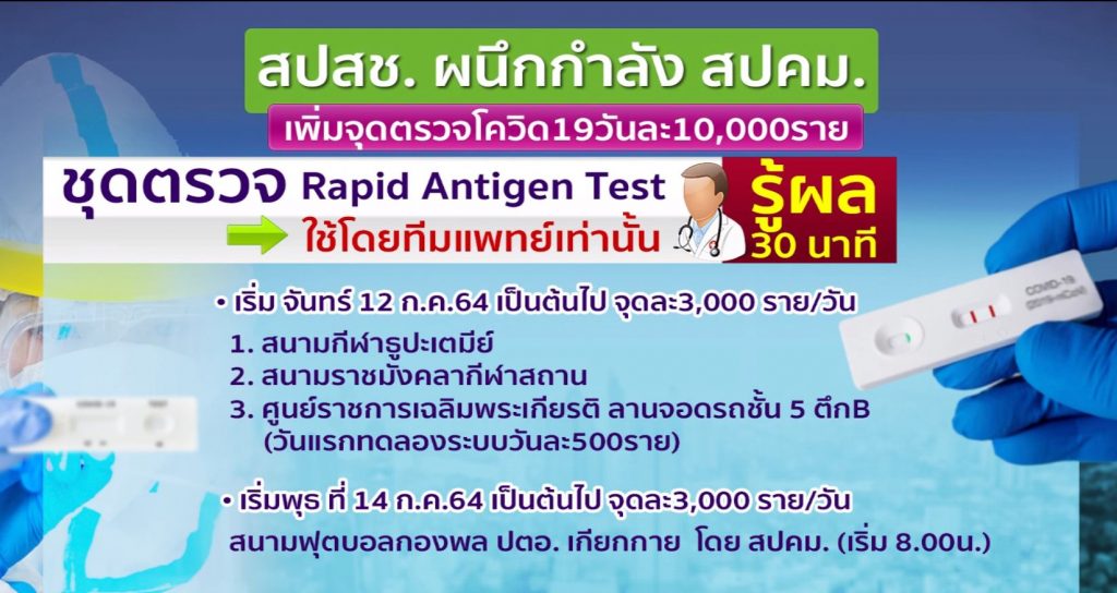 กทม. 12 ก.ค.-สปสช. จัดจุดตรวจโควิดโดยใช้ Rapid Antigen Test กระจายในพื้นที่กรุงเทพฯ เริ่มวันนี้เป็นวันแรก รู้ผลภายใน 30 นาที