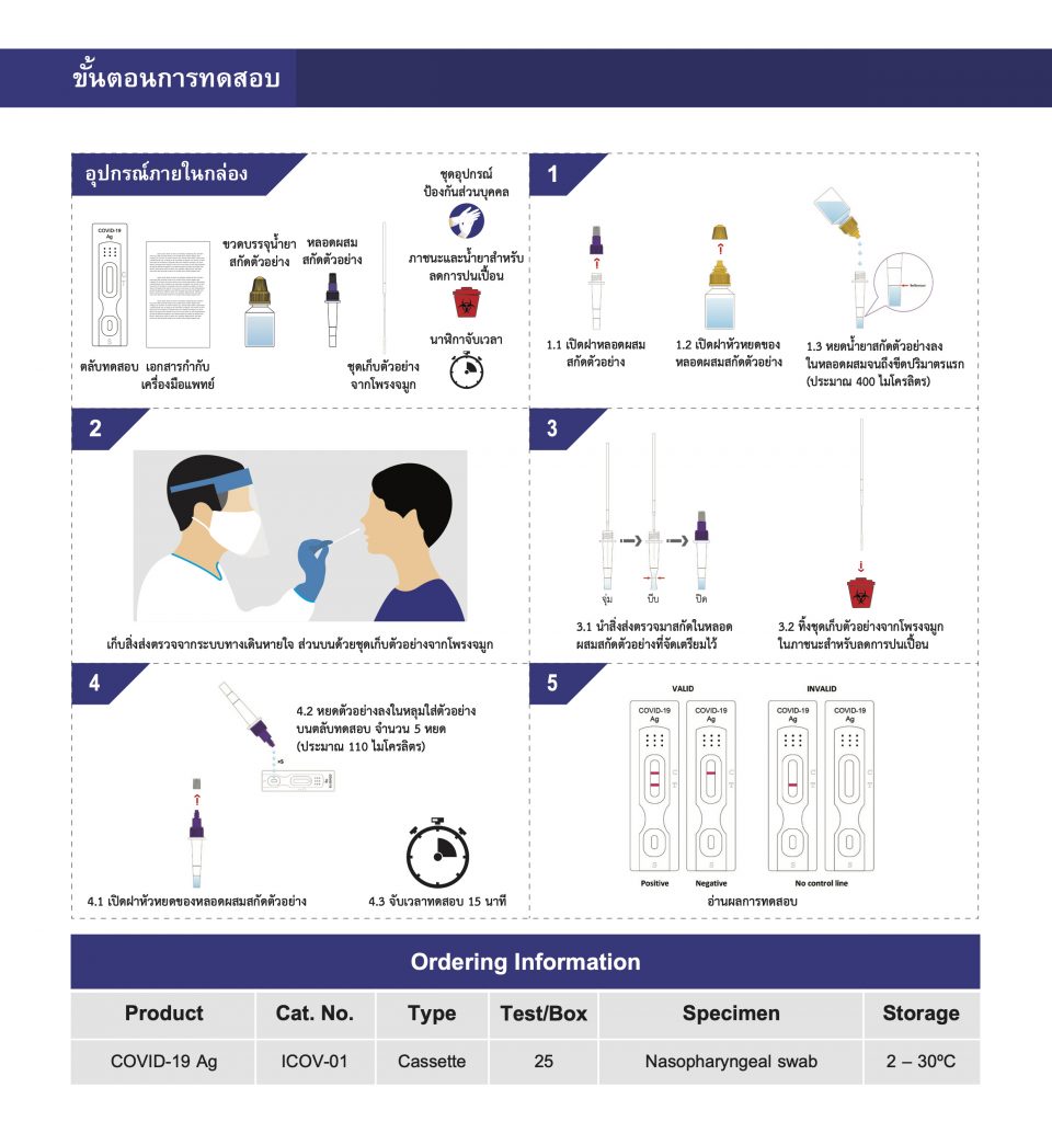 “ในระหว่างนี้ทีมผู้วิจัยได้เร่งทำคลิปวิดีโอสาธิตและคำอธิบายการใช้งานชุดทดสอบสำหรับประชาชนทั่วไป เพื่อความเข้าใจที่ถูกต้องถึงขั้นตอนวิธีการทำที่ถูกต้องและปลอดภัย ตั้งแต่การเก็บตัวอย่าง การแยงโพรงจมูกด้านหน้าที่ต้องลึกประมาณ 2 เซนติเมตร ปั่นจมูกเพื่อให้ตัวอย่างที่เก็บมีความสมบูรณ์ รวมทั้งการนำมาแช่ในน้ำยา การอ่านค่าแผ่นกระดาษ lateral flow และวิธีการจัดเก็บทำลายเพื่อไม่ให้กลายเป็นขยะติดเชื้อต่อไป” หัวหน้าโครงการวิจัย กล่าว