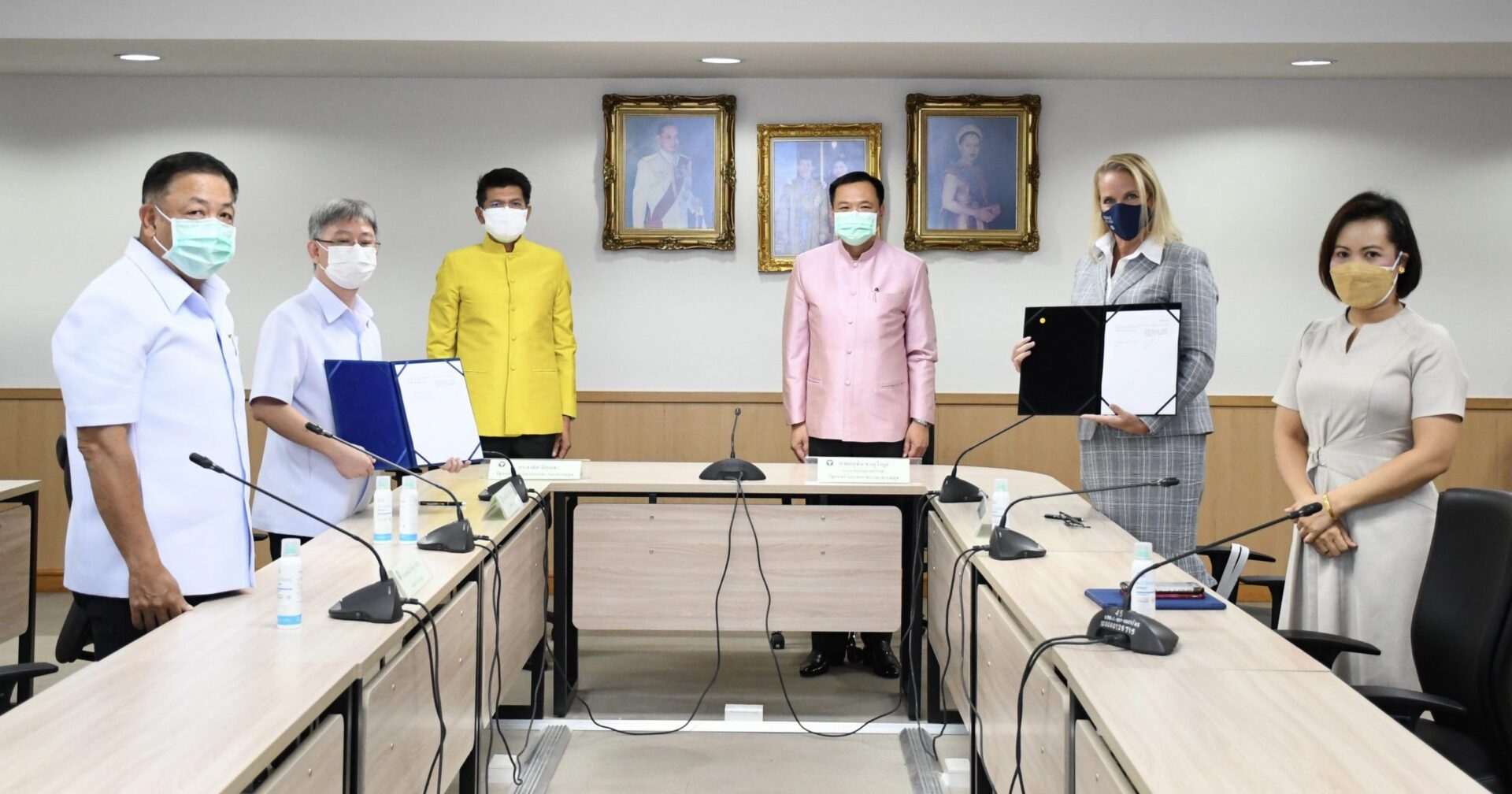 นายอนุทิน ชาญวีรกูล รองนายกรัฐมนตรีและรัฐมนตรีว่าการกระทรวงสาธารณสุข พร้อมด้วยนายสาธิต ปิตุเตชะ รัฐมนตรีช่วยว่าการกระทรวงสาธารณสุข และนพ.เกียรติภูมิ วงศ์รจิต ปลัดกระทรวงสาธารณสุข เป็นสักขีพยานการลงนามในสัญญาการจัดหาวัคซีนโควิด19 ชนิด mRNA ระหว่างนพ.โอภาส การย์กวินพงศ์ อธิบดีกรมควบคุมโรค และ Ms. Deborah Seifert ผู้จัดการบริษัท Pfizer ประเทศไทยและอินโดไชนา เพื่อจัดหาวัคซีนโควิด 19 จำนวน 20 ล้านโดส