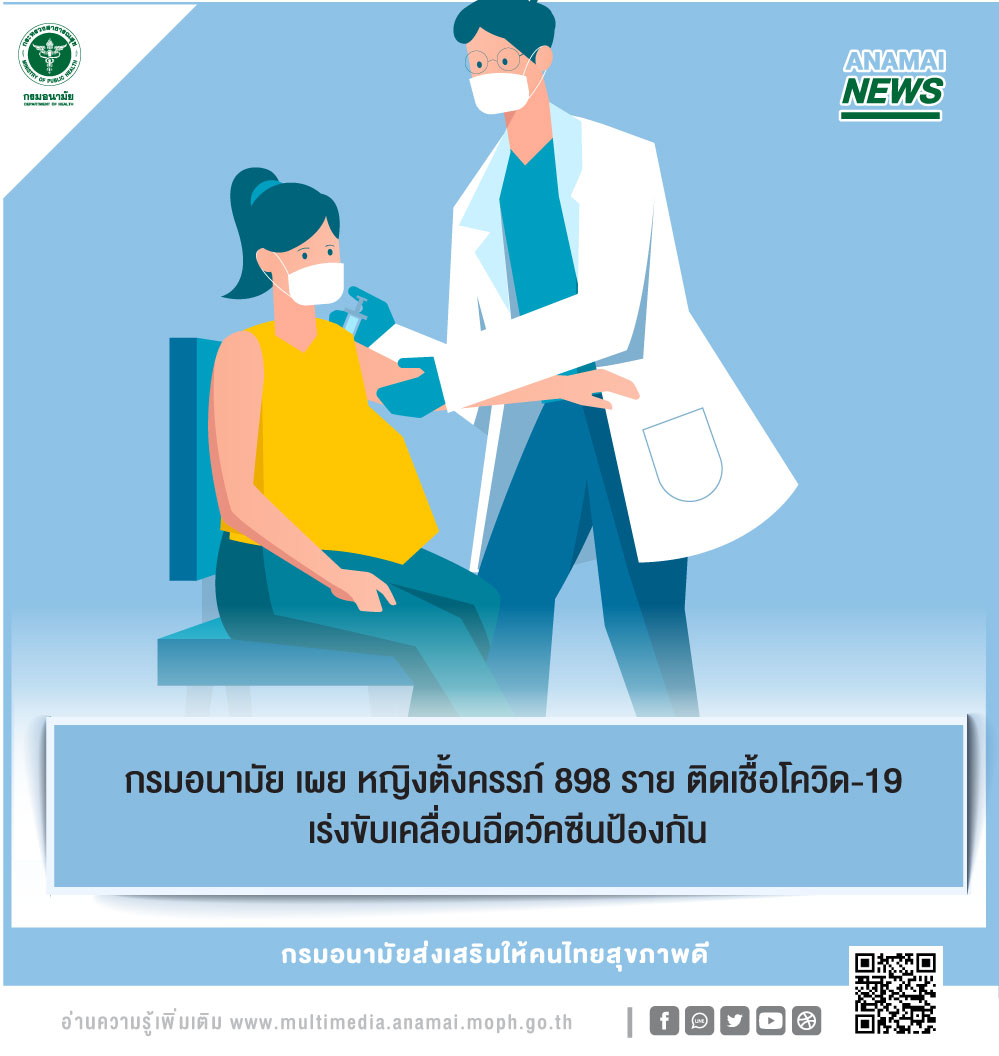 กรมอนามัย 22 ก.ค.- กรมอนามัย เผยหญิงตั้งครรภ์ 898 ราย ติดเชื้อโควิด-19 เร่งขับเคลื่อนฉีดวัคซีนป้องกัน