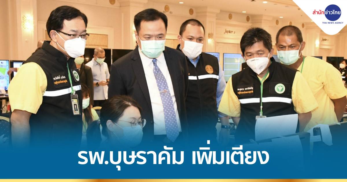 อย่างไรก็ตาม กระทรวงสาธารณสุขได้เพิ่มศักยภาพให้โรงพยาบาลบุษราคัมมีความพร้อมทั้งอุปกรณ์ ยา เวชภัณฑ์ ห้องไอซียู และห้องแยกความดันลบ เป็นต้น ช่วยลดความแออัดในโรงพยาบาลหลักได้เป็นอย่างดี นายอนุทิน กล่าวว่า ขณะนี้โรงพยาบาลบุษราคัมรับผู้ป่วยค่อนข้างมาก อัตราการครองเตียงมากกว่าร้อยละ 95 โดยในแต่ละวันจะมีผู้ป่วยหายกลับบ้านได้ ทำให้สามารถหมุนเวียนรับผู้ป่วยใหม่เข้าระบบรักษาอย่างต่อเนื่อง ล่าสุดวันนี้ได้สั่งการให้ขยายพื้นที่ในโซนพักผ่อน เพิ่มจำนวนเตียงให้มากที่สุดเท่าที่จะทำได้ เพื่อรองรับผู้ป่วยรายใหม่ในแต่ละวันจากการค้นหาเชิงรุกใน กทม. อย่างน้อยมีเตียงหมุนเวียน 50-100 เตียง เพื่อลดปัญหาการรอเตียง และการเข้าไม่ถึงระบบบริการ รวมถึงลดการสูญเสียในบ้าน ช่วยแบ่งเบาภาระให้ได้มากที่สุด