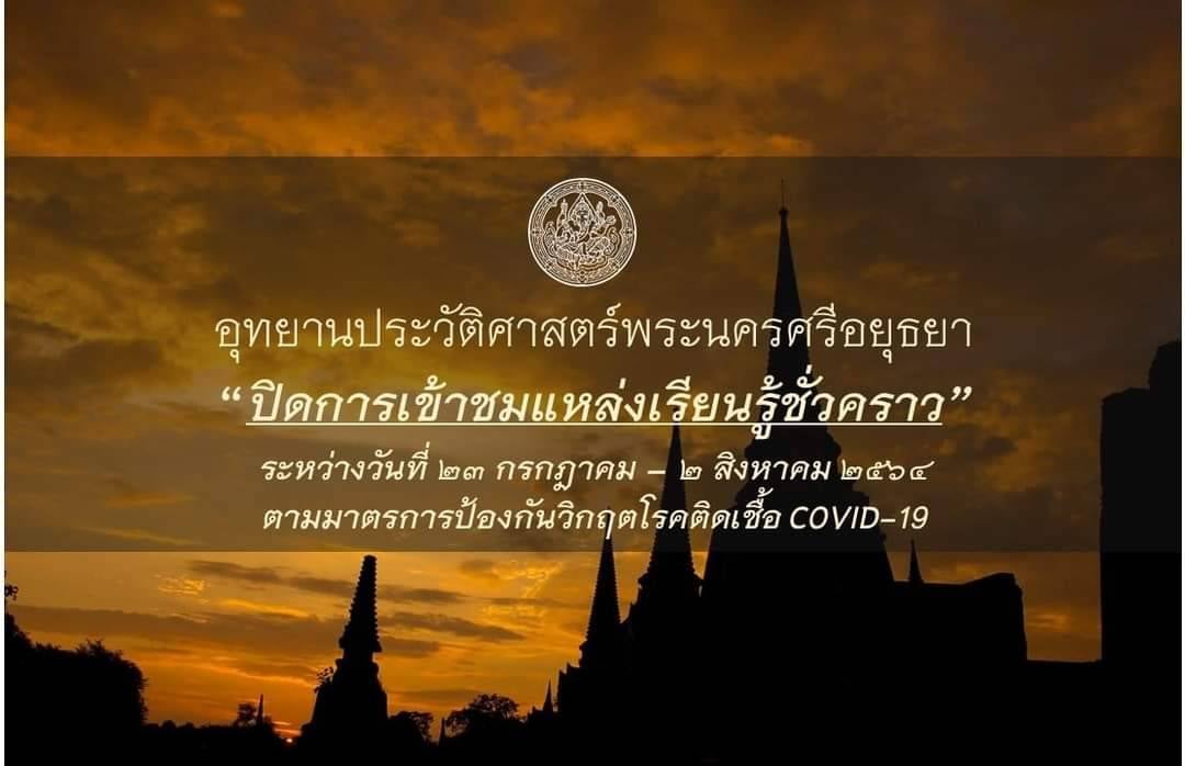 นายประทีป เพ็งตะโก อธิบดีกรมศิลปากร เปิดเผยว่า ตามที่เมื่อวันที่ 21 กรกฎาคม 2564 ศูนย์ปฏิบัติการ ศูนย์บริหารสถานการณ์แพร่ระบาดของโรคติดเชื้อไวรัสโคโรนา 2019 หรือโรคโควิด 19 (Corona Virus Disease 2019 (COVID-19)) (ศปก.ศบค.) ได้มีข้อเสนอแนะให้ผู้ว่าราชการกรุงเทพมหานครหรือผู้ว่าราชการจังหวัด โดยเฉพาะในพื้นที่ควบคุมสูงสุดและเข้มงวด 13 จังหวัดตามคําสั่งศูนย์บริหารสถานการณ์แพร่ระบาดของโรคติดเชื้อไวรัสโคโรนา 2019 (โควิด-19) ที่ 10/2564 เรื่อง พื้นที่สถานการณ์ที่กําหนดเป็นพื้นที่ควบคุมสูงสุดและเข้มงวด พื้นที่ควบคุมสูงสุด พื้นที่ควบคุมและพื้นที่เฝ้าระวังสูง ตามข้อกําหนดออกตามความในมาตรา 9 แห่งพระราชกําหนดการบริหารราชการในสถานการณ์ฉุกเฉิน พ.ศ. 2558 ลงวันที่ 17 กรกฎาคม พ.ศ. 2564 ออกประกาศปิดสถานที่ต่าง ๆ ในท้องที่รับผิดชอบ เพื่อควบคุมการแพร่ระบาดของโรคติดเชื้อไวรัสโคโรนา 2019 หรือโรคโควิด-19 (Corona Virus Disease 2019 (COVID-19)) โดยอาศัยอํานาจตามความในพระราชบัญญัติโรคติดต่อ พ.ศ.2558