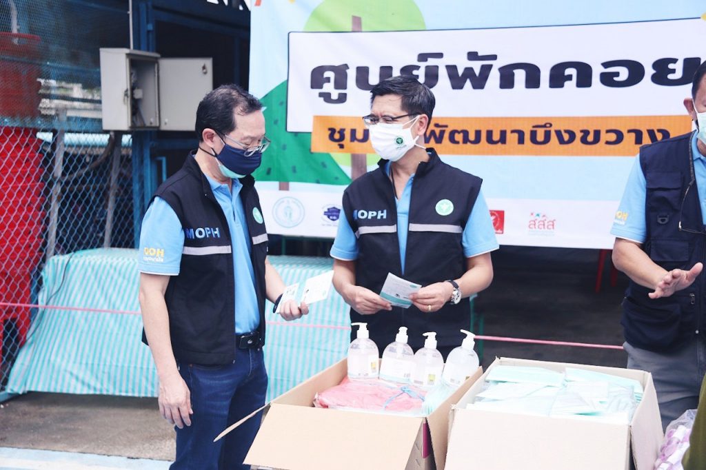 วันนี้ (24 กรกฏาคม 2564) นายแพทย์อรรถพล แก้วสัมฤทธิ์ รองอธิบดีกรมอนามัย ร่วมเปิดศูนย์พักคอยชุมชนพัฒนาบึงขวาง ณ ชอย 3 ถนนร่มเกล้า แขวงแสนแสบ เขตมีนบุรี กรุงเทพมหานคร พร้อมทั้งร่วมรับฟังปัญหาของชุมชน โดยมีผู้บริหารและเจ้าหน้าที่จากสถาบันพัฒนาสุขภาวะเขตเมือง กรมอนามัย กระทรวงสาธารณสุข ร่วมกับผู้อำนวยการสำนักงานเขตมีนบุรี ประธานคณะอนุกรรมการหลักประกันสุขภาพระดับเขตพื้นที่กรุงเทพมหานคร (อปสข.) ผู้บริหารและเจ้าหน้าที่จากสำนักงานกองทุนหลักประกันสุขภาพแห่งชาติ ผู้บริหาร และเจ้าหน้าที่จากสำนักงานกองทุนหลักประกันสุขภาพแห่งชาติ ผู้อำนวยการสำนักวิจัยสังคมและสุขภาพ กระทรวงสาธารณสุข ผู้บริหารและเจ้าหน้าที่สำนักงานคณะกรรมการสุขภาพแห่งชาติ ประธานมูลนิธิสถาบันวิจัยและปฏิบัติการสังคม ประธานและคนในชุมชน และอาสาสมัคร เข้าร่วม