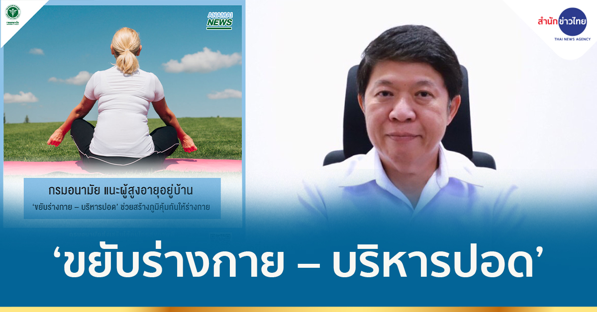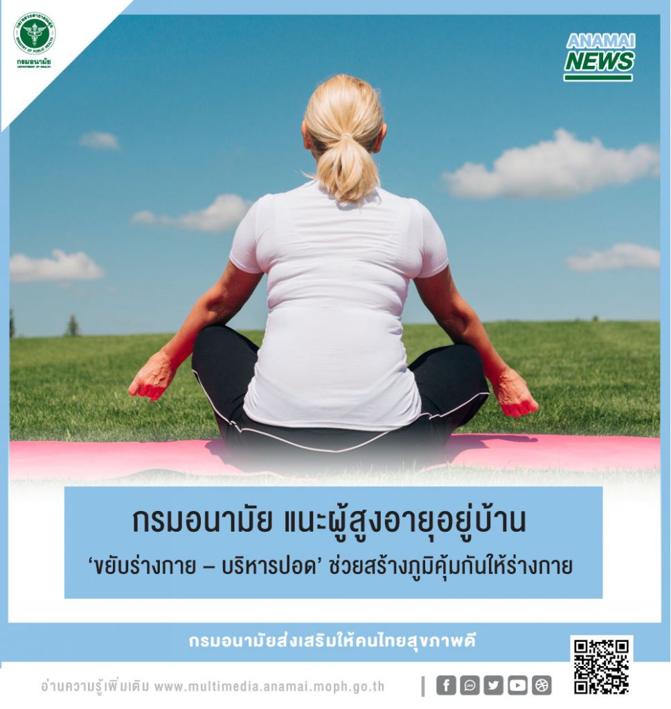 นายแพทย์สุวรรณชัย วัฒนายิ่งเจริญชัย อธิบดีกรมอนามัย กล่าวว่า จากสถานการณ์การแพร่ระบาดของโรคโควิด-19 ผู้สูงอายุถือเป็นประชาชนกลุ่มเสี่ยงต่อการติดเชื้อ เนื่องจากผู้สูงอายุส่วนใหญ่มีโรคประจำตัว และมีภูมิคุ้มกันที่ต่ำ หากติดเชื้อแล้วอาจทำให้มีอาการอย่างรุนแรง มีภาวะแทรกซ้อน จนถึงขั้นเสียชีวิตได้ ดังนั้น เพื่อลดความเสี่ยงต่อการได้รับเชื้อ ผู้สูงอายุจำเป็นต้องอยู่บ้านและควรขยับร่างกาย เคลื่อนไหวร่างกาย เป็นประจำเพื่อสุขภาพที่ดีในระยะยาว เพราะหากมีการเคลื่อนไหวร่างกายหรือมีการทำกิจกรรมต่าง ๆ น้อย หรือมีพฤติกรรมเนือยนิ่ง นั่ง ๆ นอน ๆ อาจส่งผลต่อเสียต่อการทำงานของหัวใจ ปอด และหลอดเลือด ทำให้เหนื่อยง่าย มีภาวะความดันโลหิตสูงขึ้น รวมทั้งอัตราการเผาผลาญพลังงานก็จะลดต่ำลง เสี่ยงต่อภาวะอ้วน รวมทั้งความแข็งแรงของกล้ามเนื้อและข้อต่อจะลดลง ทำให้ประสิทธิภาพการเคลื่อนไหวร่างกายในชีวิตประจำวัน เช่น การลุก-นั่งจากเก้าอี้ การเข้าห้องน้ำ การหยิบจับสิ่งของ ลดน้อยลงตามไปด้วย เสี่ยงต่อการหกล้มได้ง่าย นอกจากนี้ ผู้สูงอายุที่มีการเคลื่อนไหวร่างกายน้อย มีกิจกรรมทางกายไม่เพียงพอ ยังส่งผลให้ภาวะโรคประจำตัวนั้นรุนแรงขึ้นได้