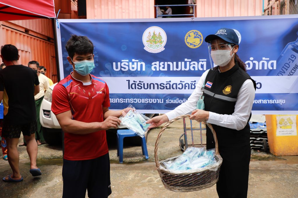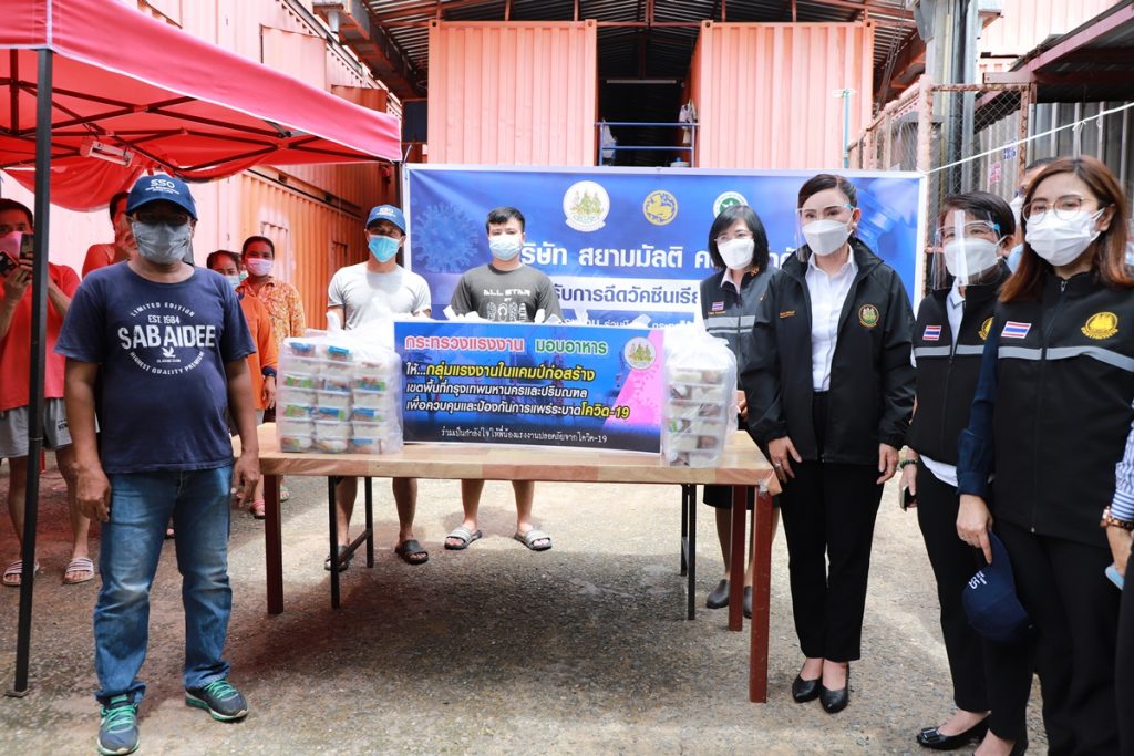 เมื่อวันที่ 27 กรกฎาคม 2564 นายสุชาติ ชมกลิ่น รัฐมนตรีว่าการกระทรวงแรงงาน มอบหมายให้นางธิวัลรัตน์ อังกินันทน์ ที่ปรึกษารัฐมนตรีว่าการกระทรวงแรงงาน ลงพื้นที่มอบป้ายแคมป์คนงานที่ฉีดวัคซีนเรียบร้อยแล้ว ของบริษัท สยามมัลติ คอน จำกัด ซอยอินทามระ 15 และบริษัท 27 วิศวกรรม จำกัด ซอยอินทามระ 14 ถนนสุทธิสารวินิจฉัย แขวงสามเสนใน เขตพญาไท กรุงเทพมหานคร ทั้งนี้ ได้มอบข้าวกล่องให้แคมป์คนงานดังกล่าวด้วย โดยมีนางเธียรรัตน์ นะวะมะวัฒน์ โฆษกกระทรวงแรงงาน (ฝ่ายการเมือง) น.ส.บุปผา เรืองสุด ผู้ตรวจราชการกระทรวงแรงงาน และนายวรรณรัตน์ ศรีสุขใส รองอธิบดีกรมสวัสดิการและคุ้มครองแรงงาน เข้าร่วมในครั้งนี้ด้วย