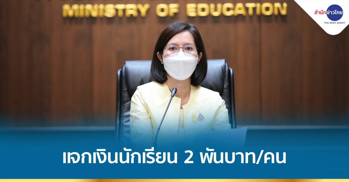 นางสาวตรีนุช เทียนทอง รัฐมนตรีว่าการกระทรวงศึกษาธิการ เปิดเผยว่า การประชุม ครม. ผ่านระบบวีดีโอคอนเฟอเรนซ์ ที่มี พล.อ.ประยุทธ์ จันทร์โอชา นายกรัฐมนตรี เป็นประธาน ได้มีมติเห็นชอบโครงการให้ความช่วยเหลือบรรเทาภาระค่าใช้จ่ายด้านการศึกษาในช่วงการแพร่ระบาดของโรคโควิด-19 ของกระทรวงศึกษาธิการ ใน 3 มาตรการ วงเงินรวมเกือบ 22,000 ล้านบาท คือ มาตรการที่ 1 ลดภาระค่าใช้จ่ายในการเรียนรู้ โดยให้ความช่วยเหลือนักเรียน นักศึกษาที่กำลังศึกษาอยู่ในสถานศึกษาสังกัด ศธ.ทั้งภาครัฐและเอกชน และสถานศึกษานอกสังกัด ศธ.ในระดับการศึกษาขั้นพื้นฐาน ชั้น อนุบาล-ม.6 และระดับอาชีวศึกษา ระดับประกาศนียบัตรวิชาชีพ(ปวช.) และประกาศนียบัตรวิชาชีพชั้นสูง(ปวส.) ในอัตรา 2,000 บาทต่อคน โดยจ่ายผ่านสถานศึกษา และให้สถานศึกษาจ่ายตรงให้แก่นักเรียน นักศึกษา หรือ ผู้ปกครองแล้วแต่กรณี ในรูปแบบของเงินสด หรือ นำเข้าบัญชีธนาคาร รวมจำนวน ประมาณ 11 ล้านคน วงเงินรวมประมาณ 21,600 ล้านบาท