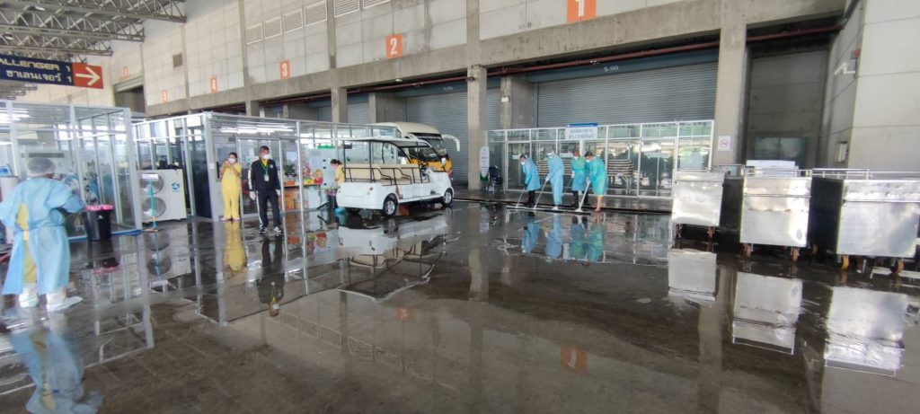 วันนี้ (1 สิงหาคม 2564) นายแพทย์กิตติศักดิ์ อักษรวงศ์ ผู้อำนวยการโรงพยาบาลบุษราคัม ให้สัมภาษณ์ว่า โรงพยาบาลบุษราคัม ได้จัดตั้งขึ้นมาเพื่อรับรักษาผู้ป่วยโควิด 19 ตั้งวันที่ 14 พฤษภาคม 2564 ข้อมูลถึงวันที่ 31 กรกฎาคม 2564 ให้การดูแลผู้ป่วยแล้วจำนวน 13,275 ราย โดยในเช้าวันนี้ได้จัด Big cleaning ทำความสะอาดครั้งใหญ่ในบริเวณจุดแรกรับผู้ป่วย ทั้ง 2 จุด พร้อมปรับระบบประเมินผู้ป่วยแรกรับ โดยเพิ่มทางด่วน Fast Track สำหรับผู้ป่วยกลุ่มเปราะบาง เช่น ผู้ป่วยที่ต้องให้ออกซิเจน เด็กเล็ก ผู้สูงอายุ หญิงตั้งครรภ์ ผู้ป่วยติดเตียง ผู้พิการ เป็นต้น ให้ได้รับการประเมินอาการก่อน และจัดโซนผู้ป่วยให้ง่ายต่อการดูแลรักษา เนื่องจากระยะหลังพบผู้ป่วยที่เป็นกลุ่มเปราะบางเพิ่มมากขึ้น