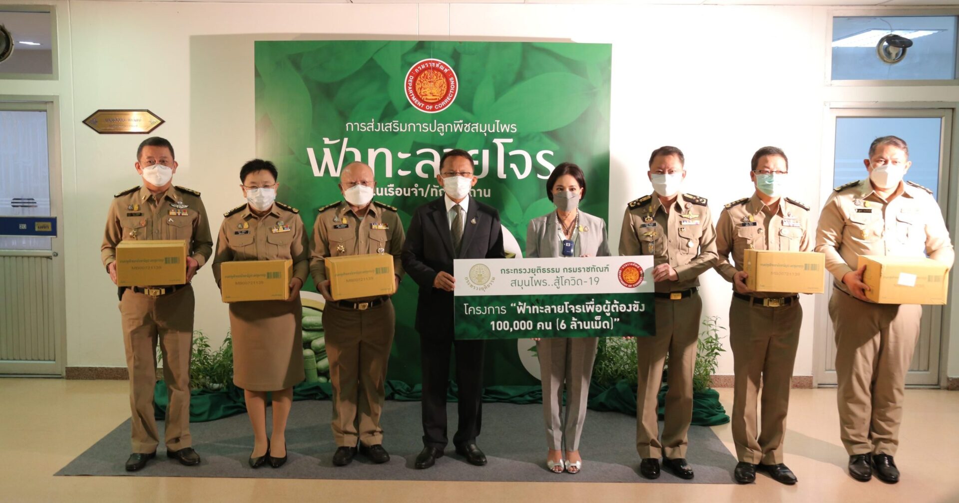 จากนั้นนายสมศักดิ์ ได้มอบยาฟ้าทะลายโจรสำหรับผู้ต้องขัง100,000 คน (6 ล้านแคปซูล) โดยมีนายอายุตม์ และ ผู้บัญชาการเรือนจำจากหลายเรือนจำเป็นตัวแทนรับมอบ .-สำนักข่าวไทย