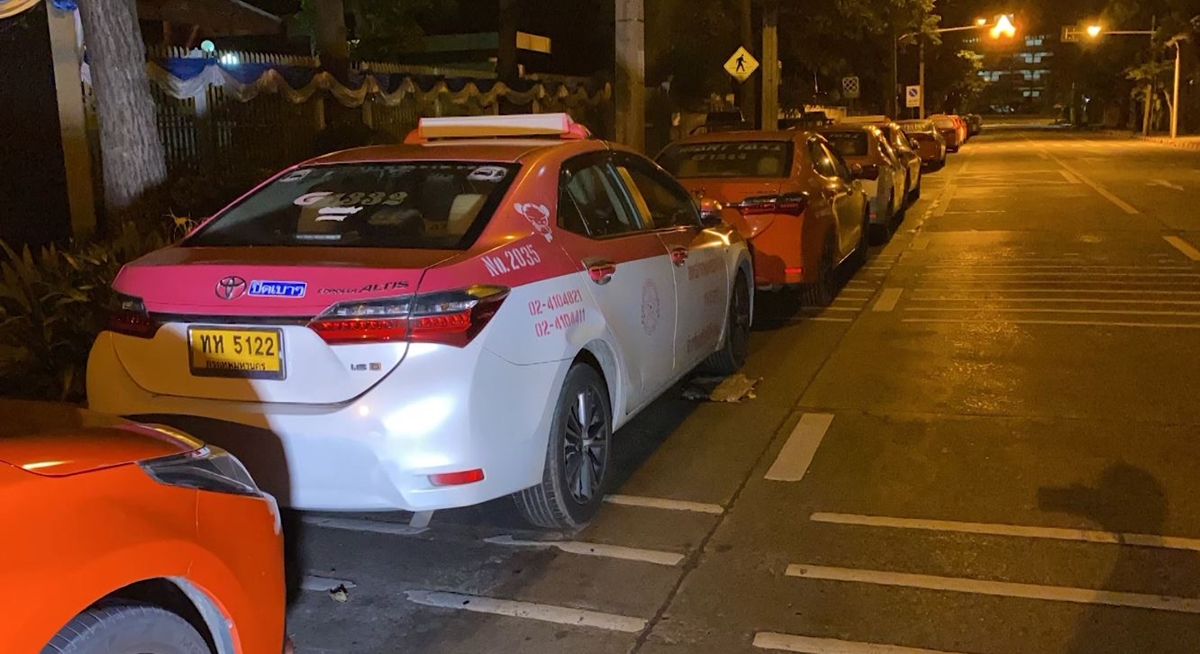 กรุงเทพฯ 3 ส.ค. – รถแท็กซี่จอดเรียงรายหน้า ก.แรงงาน ย่านดินแดง กว่า 100 คัน พร้อมติดป้ายร้องขอความช่วยเหลือจากผลกระทบโควิด-19