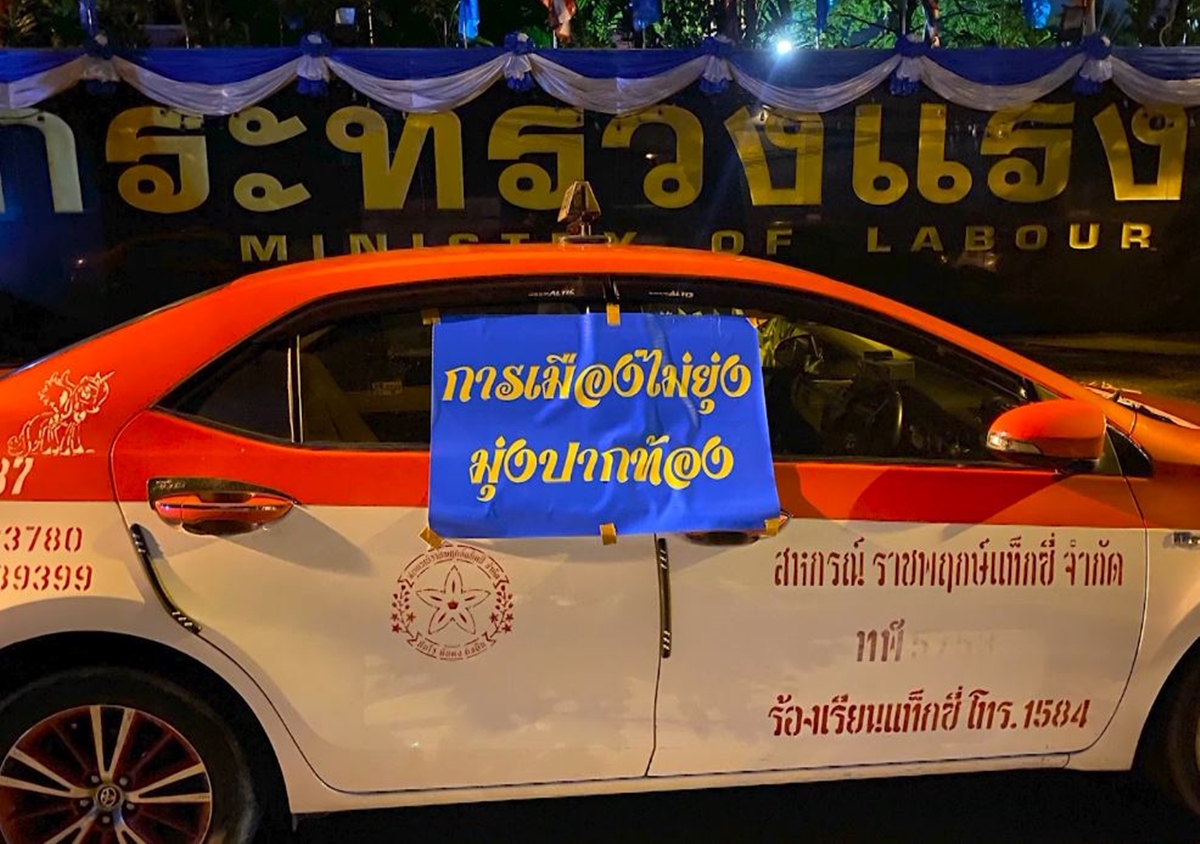 ผู้สื่อข่าวรายงานว่า บริเวณหน้ากระทรวงแรงงาน เป็นอีกจุดหนึ่งที่กลุ่มอาชีพขับรถแท็กซี่นำรถแท็กซี่กว่า 100 คัน พร้อมติดป้ายเรียกร้องขอความช่วยเหลือจากผลกระทบโควิด-19 เช่น ลุงตู่ช่วยด้วย ไม่มีเงินผ่อนรถ ไม่มีจะกิน ไม่มีผู้โดยสาร กลัวโควิด กลัวตาย รายได้ไม่มีก็อดตายสิครับ เป็นต้น มาจอดริมถนนมิตรไมตรี ย่านดินแดง จนเกือบถึงแยกประชาสงเคราะห์ โดยมาจอดทิ้งไว้ตั้งแต่เย็นวันศุกร์ที่ 30 กรกฎาคมที่ผ่านมา เพื่อแสดงสัญลักษณ์ว่าได้รับผลกระทบจากมาตรการล็อกดาวน์จังหวัดควบคุมสูงสุดและเข้มงวด เช่นเดียวกับอีกหลายจุด อาทิ กระทรวงคมนาคม กระทรวงการคลัง กระทรวงพลังงาน ธนาคารแห่งประเทศไทย โดยหวังว่ารัฐบาลจะเร่งจ่ายเงินเยียวยาให้โดยเร็วที่สุด