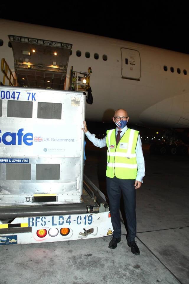 วัคซีนจากการบริจาคของรัฐบาลสหราชอาณาจักรที่เพิ่งเดินทางถึงสนามบินสุวรรณภูมิเมื่อเวลาประมาณ 21.00 น. นับเป็นอีกหนึ่งก้าวสำคัญของเราทุกคนที่จะก้าวผ่านวิกฤตครั้งนี้ไปด้วยกัน ด้วยการช่วยลดการระบาดของโรคโควิด-19 ในประเทศไทย โดยจุดประสงค์ของการบริจาคเพื่อช่วยกระจายวัคซีนให้ถึงประชาชนทั่วประเทศมากขึ้นอย่างเท่าเทียม ทั้งนี้นายแพทย์โสภณ เอี่ยมศิริถาวร รองอธิบดีกรมควบคุมโรค และนางจุฬามณี ชาติสุวรรณ อธิบดีกรมยุโรป กระทรวงการต่างประเทศ เป็นตัวแทนรัฐบาลไทยรับมอบวัคซีนออกซฟอร์ด-แอสตร้าเซนเนก้า จำนวน 415,000 โดสในคืนนี้