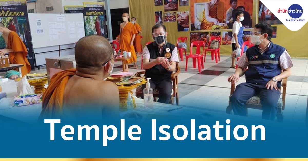 นายแพทย์ไพโรจน์ สุรัตนวนิช รองอธิบดีกรมการแพทย์ กล่าวว่า สืบเนื่องจากกรณีข่าว พระ เณร และฆราวาสโรงเรียนพระปริยัติธรรม วัดผ่องพลอยวิริยาราม ติดเชื้อโควิดกว่า 202 ราย จึงมอบหมายให้โรงพยาบาลสงฆ์ลงพื้นที่ดูแล และสร้างสถานแยกกักตัวที่วัด (Temple Isolation) เพื่อป้องกันการปะปนกับผู้ติดเชื้อ ซึ่งผู้ป่วยทั้งหมดมีอาการอยู่ในระดับกลุ่มสีเขียว โดยให้มีการดูแลแบบองค์รวมภายในชุมชน และเริ่มพิจารณาให้ยาฟาวิพิราเวียร์ให้เร็วที่สุด เพื่อลดการแพร่เชื้อและลดอาการความรุนแรงของโรค