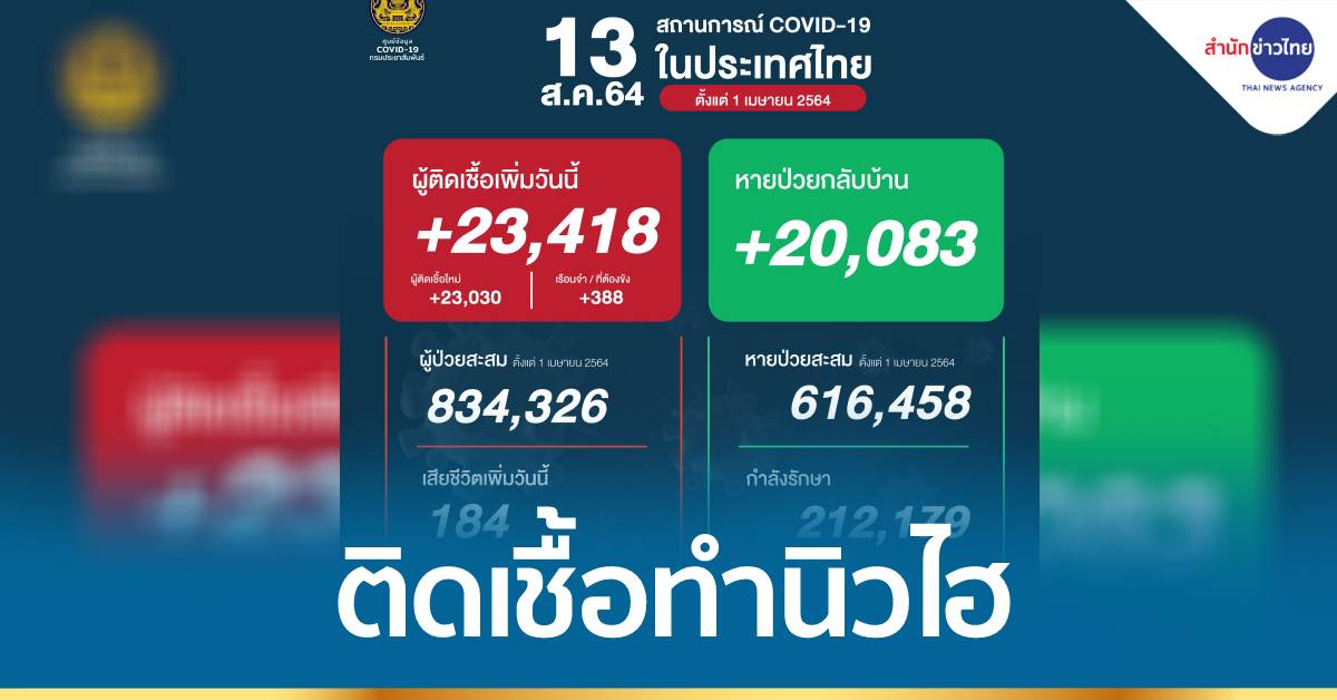 กทม. 13 ส.ค.-โควิด-19 วันนี้ พบผู้ติดเชื้อใหม่ทำสถิตินิวไฮเพิ่มอีก 23,418 คน เสียชีวิต 184 คน