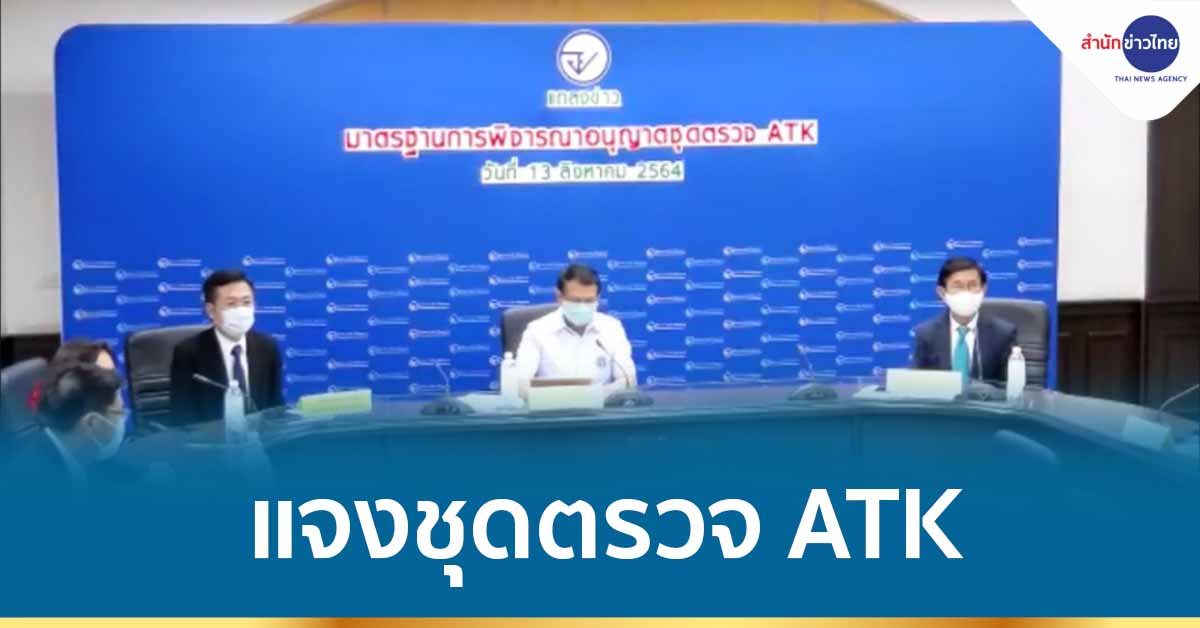นพ.ไพศาล ดั่นคุ้ม เลขาธิการ อย. กล่าวชี้แจงกรณีมาตรฐานการอนุญาตชุดตรวจ และการจัดหาชุดตรวจ ATK 8.5 ล้านชุด ว่า ชุดตรวจ Antigen Test Kit หรือ ATK จัดอยู่ในกลุ่มเครื่องมือแพทย์ ใช้ในการวินิจฉัยโควิด-19 โดยมีทั้งการตรวจแบบแยงจมูกหรือการตรวจด้วยตัวอย่างของน้ำลาย ใช้เวลาในการแสดงผลภายใน 30 นาที ปัจจุบันมีชุดตรวจ ATK ในไทย ที่ผ่านการอนุมัติจาก อย. รวม 86 รายการ เป็นการใช้ในประชาชนทั่วไป หรือ Home Use 34 รายการใช้ในบุคลากรทางการแพทย์ หรือ Professinal Use 52 รายการ ส่วนกระบวนการตรวจสอบก่อนการอนุญาตของ อย. ใช้ 4 หลักเกณฑ์ด้วยกัน