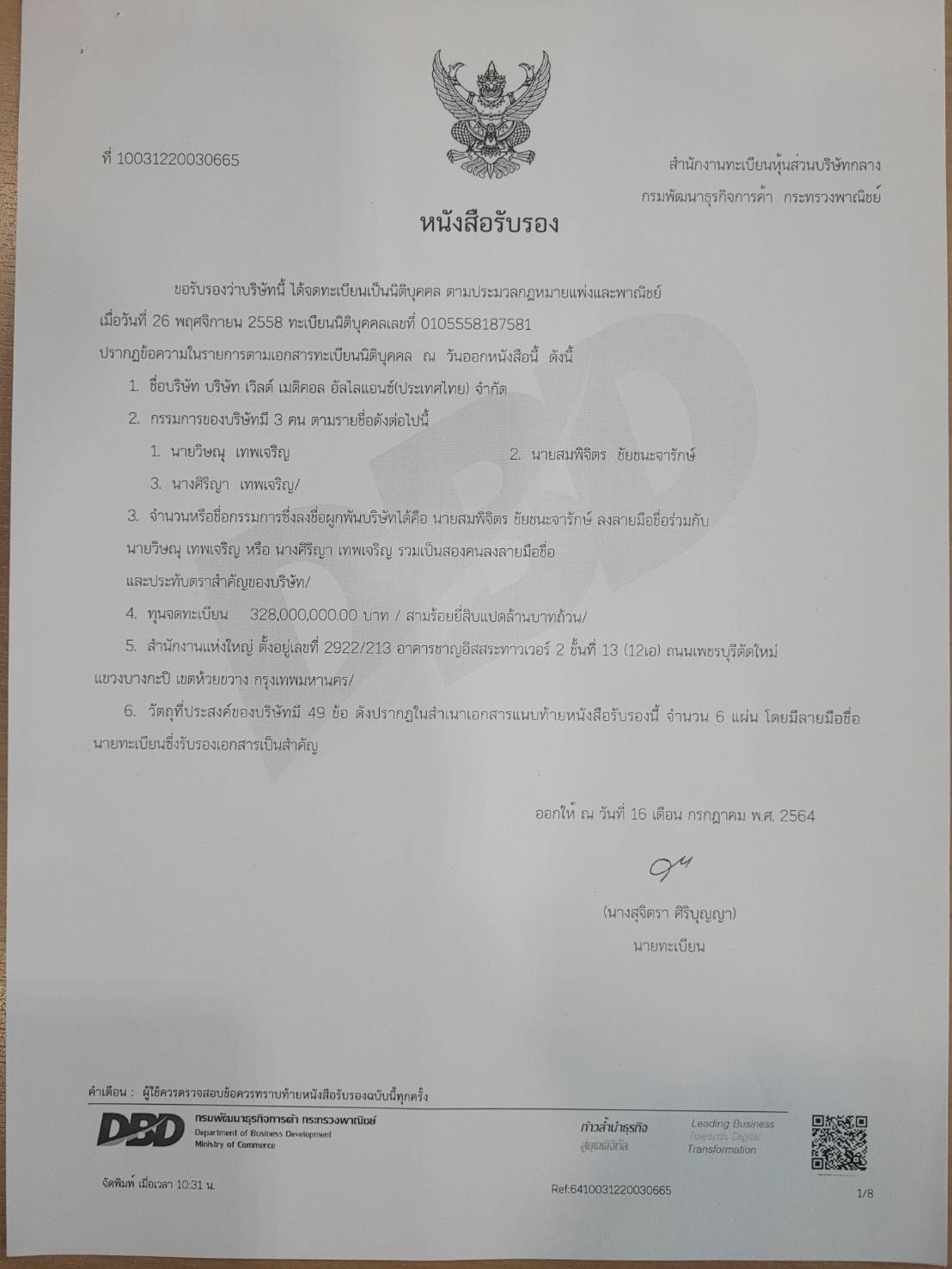 นางศิริญา เทพเจริญ รองประธานเจ้าหน้าที่บริหารสายงานการตลาด บริษัท ณุศาศิริ จำกัด (มหาชน) กล่าวชี้แจงเรื่องชุดตรวจ ATK (Antigen Test Kit) ที่ชนะการประมูลขององค์การเภสัชกรรม แต่เกิดข้อกังขาประสิทธิภาพชุดตรวจ เนื่องจาก FDA USA ไม่รับรอง ว่า เรื่องนี้ทางบริษัท ณุศาศิริ มีทุนจดทะเบียนกว่า 7,641 ล้านบาท ได้เข้ามาเกี่ยวข้องโดยทำหน้าที่เป็นผู้แทนจำหน่าย โดยใช้ชื่อ บริษัท เวิลด์ เมดิคอล อัลไลแอนซ์ (ประเทศไทย) จำกัด เข้าร่วมประมูลชุดตรวจ ATK กับองค์การเภสัชกรรม รับมอบอำนาจ 100% จากบริษัท ออสท์แลนด์ แคปปิตอล จำกัด ซึ่งเป็นบริษัทนำเข้าเครื่องมือแพทย์ เป็นผู้ได้รับอนุญาตนำเข้าจาก อย. เดิมบริษัท ณุศาศิริ ทำแต่ธุรกิจอสังหาริมทรัพย์ และครั้งแรกที่เข้ามาทำเกี่ยวกับเครื่องมือแพทย์ และร่วมประมูลกับภาครัฐ ยืนยันไม่ได้เป็นนอมินีของใคร การดำเนินการเรื่องนี้ เนื่องจากต้องการนำเข้าชุดตรวจที่คนไทย ราคาจับต้องได้ มาใช้ตรวจเอง และเดิมมีการสั่งซื้อในกลุ่มเพื่อนเพื่อมาใช้ในงานอีเวนท์ ในกลุ่มท่องเที่ยว และหากประมูลได้ในนามรัฐก็จะยิ่งทำให้มีราคาถูกลง เมื่อมีการสั่งซื้อมาใช้ในกลุ่มเพื่อนที่ทำธุรกิจท่องเที่ยว
