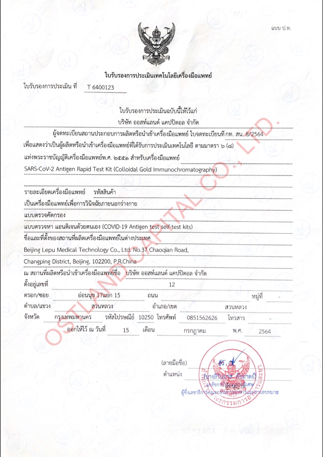 ทั้งนี้ ในการสั่งซื้อดังกล่าว ตนได้มีการสั่งสินค้าล่วงหน้ามาใช้เองในกลุ่มธุรกิจท่องเที่ยว ซึ่งจะมาถึงในวันจันทร์ที่ 16 ส.ค.นี้ โดยมีจำนวนชุดตรวจทั้งสิ้น 500,000 ชุด ยืนยันไม่เคยคิดประมูลงาน และได้งานจากภาครัฐ เพียงหวังเป็นส่วนหนึ่งช่วยให้ไทยเปิดประเทศได้อย่างรวดเร็ว ไม่เข้าใจว่าตนไปเกี่ยวข้องกับใครถึงได้เกิดปัญหาเช่นนี้ ส่วนตัวมองว่า หากมีการล้มประมูลก็ยังนำสินค้ามาขายปกติ แต่ก็อาจไม่ได้มีราคาถูกมากเท่ากับการสั่งซื้อที่ร่วมกับภาครัฐ อีกทั้งระบบตรวจสอบมาตรฐานของไทยก็มีมาตรฐาน หากคนในประเทศไม่เชื่อระบบก็ล่มสลายได้ พร้อมเผยส่วนแบ่งรายได้จากการจัดจำหน่ายนี้ ให้บริษัท ออสท์แลนด์ แคปปิตอล 20% เท่านั้น. – สำนักข่าวไทย