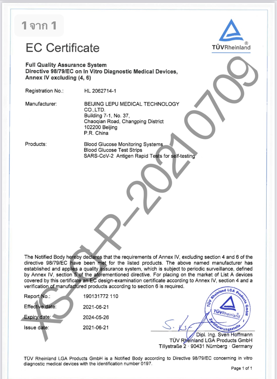 นางศิริญา กล่าวว่า ในการสั่งซื้อชุดตรวจนี้ ตนมีการตรวจสอบตั้งแต่ต้น และทราบว่าไม่ผ่าน FDA USA จึงได้สอบถามเพื่อนที่ทำคลินิกในเยอรมนี ทำให้ทราบกระบวนการขึ้นทะเบียนว่า หากไม่ได้มีแผนจัดจำหน่ายในประเทศนั้นๆ ทางบริษัทผู้ผลิตชุดตรวจก็จะไม่ได้ทำเรื่องขอขึ้นทะเบียนในประเทศนั้น และชุดตรวจ ATK ของ LEPU ของบริษัท Beijing Lepu Medical Technolog ได้ผ่านการรับรองตามมาตรฐาน CE ยุโรป และวางจำหน่ายใน 24 ประเทศ ยืนยันเป็นสินค้าที่มีมาตรฐาน โดยราคาที่ชนะการประมูล ตนชนะมาได้ในราคา 2 บาทเท่านั้น ไม่ได้ชนะในราคาต่ำมากมาย ราคารวม VAT ตก 70 บาท และหากบอกว่า ของราคาถูกเป็นของไม่ดีไปหมดก็ไม่ใช่