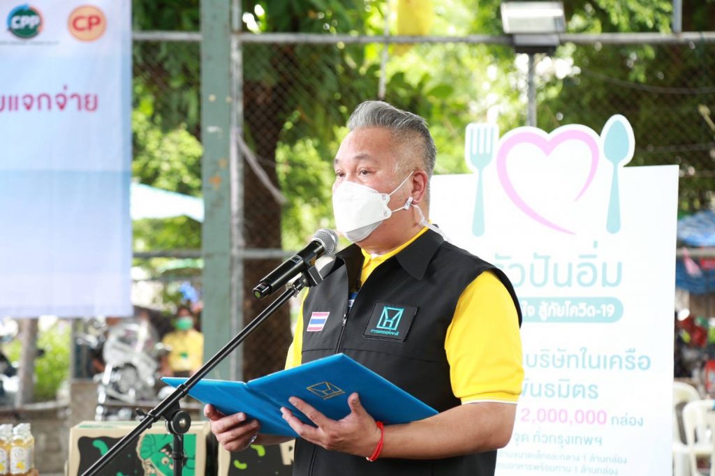 นายสุเมธ ภิญโญสนิท ประธานคณะผู้บริหาร กลุ่มธุรกิจพืชครบวงจร (ข้าวโพด) เครือเจริญโภคภัณฑ์ กล่าวว่า เรามีความปราถนาอย่างยิ่งที่จะร่วมมือกับภาครัฐ ซึ่งวันนี้รัฐมนตรีว่าการกระทรวง พม. และพันธมิตรอีกหลายองค์กร ได้เข้ามาร่วมแรงกันช่วยเหลือเรื่องอาหาร สำหรับโครงการ “ครัวปันอิ่ม” จำนวน 2 ล้านกล่อง ที่ต้องนำไปแจกจ่ายภายใน 60 วัน นับเป็นงานยาก แต่เราทำด้วยใจ และทุกภาคส่วนต้องร่วมใจกันช่วยเหลือพี่น้องประชาชน .-สำนักข่าวไทย