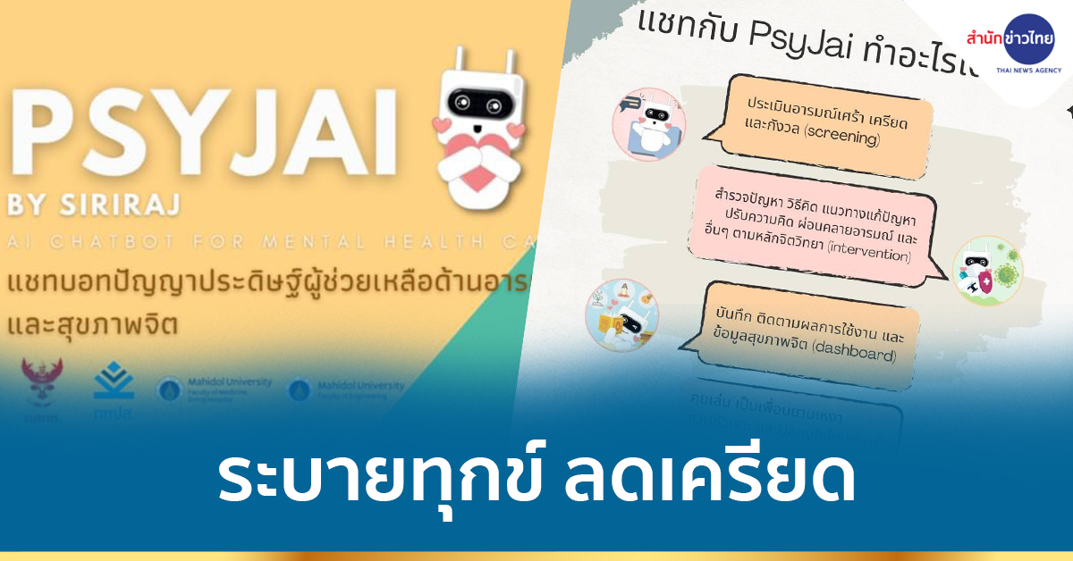 แชทบอท “ใส่ใจ” (Psyjai) ทางเลือกหนึ่ง เกิดขึ้นมาช่วยเหลือประชาชนที่ได้รับผลกระทบจากพิษโควิด จนเกิดความเครียดด้านจิตใจ บางรายถึงขึ้นคิดสั้นฆ่าตัวตาย ล่าสุด คณะวิศวกรรมศาสตร์ มหาวิทยาลัยมหิดล ภาควิชาวิศวกรรมคอมพิวเตอร์ ร่วมกับคณะแพทยศาสตร์ศิริราชพยาบาล ภาควิชาจิตเวชศาสตร์ มหาวิทยาลัยมหิดล เปิดตัวนวัตกรรม แชทบอท “ใส่ใจ” (Psyjai) ที่สามารถพูดคุยกับทุกเพศวัย ด้วย เทคโนโลยี เอ.ไอ. ช่วยประเมินสภาวะจิตใจและอารมณ์เบื้องต้น บรรเทาความเครียดด้วยหลักจิตวิทยา