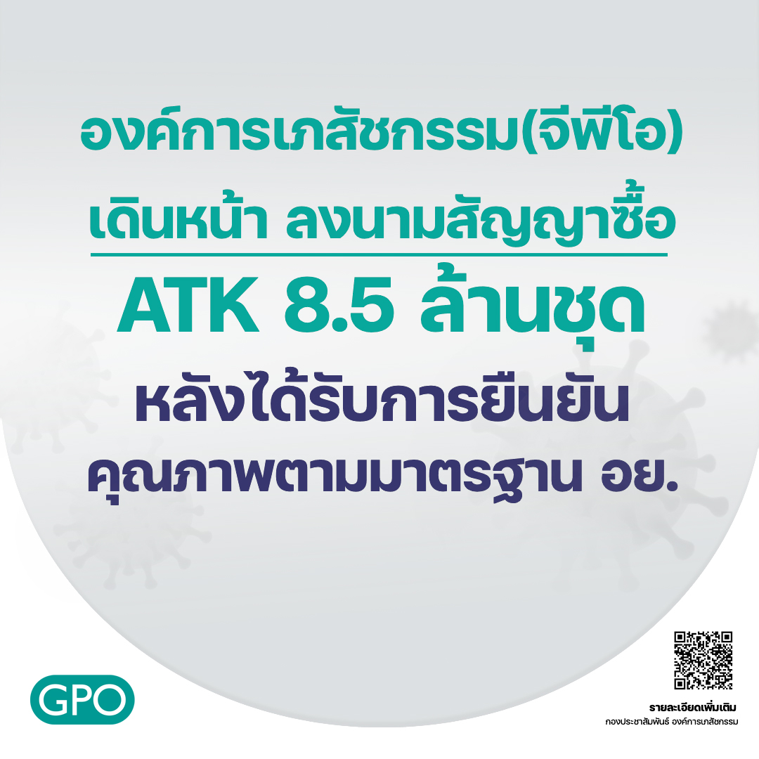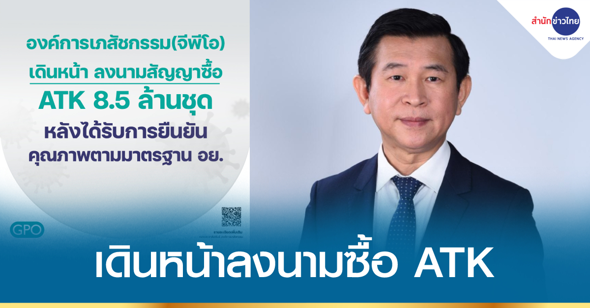 กรุงเทพฯ 17 ส.ค. – องค์การเภสัชกรรม (จีพีโอ) เดินหน้าลงนามสัญญาซื้อ ATK 8.5 ล้านชุด ต่อไป หลังได้รับการยืนยันคุณภาพตามมาตรฐาน อย. และตรวจสอบกระบวนการจัดซื้อแล้ว