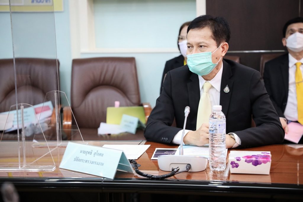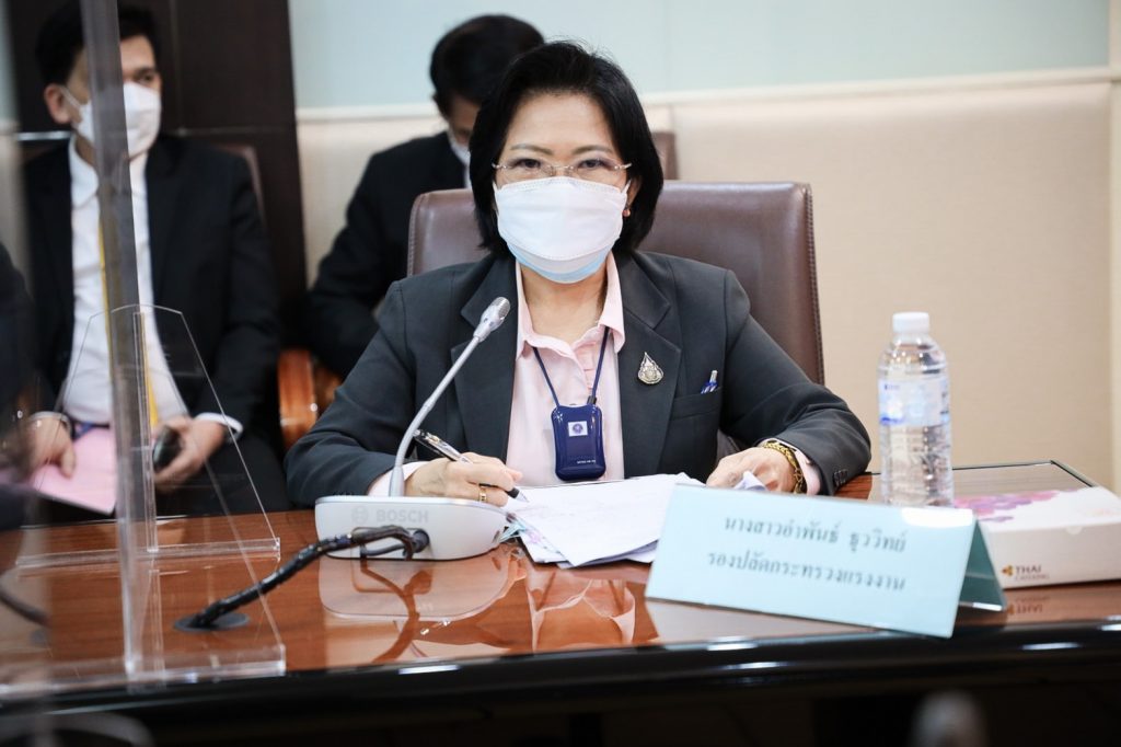 ที่เร่งด่วนและสำคัญ และให้ความช่วยเหลือผู้ใช้แรงงานได้อย่างทันท่วงที โดยมีผลการดำเนินงานที่สำคัญเป็นเชิงประจักษ์ ขอแสดงความห่วงใยสำหรับบุคลากรกระทรวงแรงงานทุกท่านที่ทุ่มเทกำลังความสามารถในการให้ความช่วยเหลือผู้ได้รับผลกระทบจากโรคโควิด -19 ขอบคุณกระทรวงแรงงานที่เร่งกระจายวัคซีนให้แก่ผู้ประกันตน โดยเฉพาะอย่างยิ่งผู้ประกันตนกลุ่มเสี่ยง ขอให้ดำเนินการต่อไปอย่างครบถ้วนและครอบคลุม เพื่อให้เป็นไปตามที่รัฐบาลได้กำหนด ให้การฉีดวัคซีนโควิด -19 เป็นวาระแห่งชาติ โดย พล.อ.ประวิตรยังได้เน้นย้ำการทำงานในประเด็นสำคัญต่าง ๆ ดังนี้ 1) การบริหารวัคซีน ให้เร่งดำเนินการสร้างภูมิคุ้มกันในกลุ่มแรงงานให้ครอบคลุม โดยเฉพาะอย่างยิ่งพื้นที่สีแดงเข้ม สำหรับศูนย์ฉีดวัคซีนแคมป์คนงาน ขอให้เร่งดำเนินการตามเป้าหมายที่กำหนด 2) มาตรการเยียวยาผู้ได้รับผลกระทบจากการ Lockdown พื้นที่สีแดงเข้ม 29 จังหวัด ทั้งนายจ้าง ผู้ประกันตน มาตรา 33, 39 และ 40 ขอให้ดำเนินการตามกำหนดระยะเวลา เพื่อช่วยให้ความช่วยเหลือผู้ได้รับผลกระทบดังกล่าว 3) สร้างการรับรู้และประชาสัมพันธ์ให้กลุ่มแรงงาน ป้องกัน ดูแลตนเองให้ปลอดภัยจากโควิด -19 รวมทั้งบุคลากรของกระทรวงแรงงาน 4) โครงการ Blue Factory ให้บริหารจัดการอย่างครบวงจร โดยสำรวจความสมัครใจของสถานประกอบการ ตรวจคัดกรองให้ครอบคลุม หากพบผู้ติดเชื้อให้เร่งดูแลและช่วยเหลืออย่างทันท่วงทีตามมาตรการด้านสาธารณสุข 5) แรงงานต่างด้าว ให้กำกับ ดูแล บริหารจัดการการทำงานของแรงงานต่างด้าว ให้เป็นไปตามกฎหมายและมาตรการด้านสาธารณสุขอย่างเคร่งครัด 6) ยกระดับการป้องกันและแก้ไขปัญหาการค้ามนุษย์ด้านแรงงานอย่างเคร่งครัด เพื่อให้เป็นไปตามมาตรฐานสากลและองค์การระหว่างประเทศ และต้องกำกับดูแลเจ้าหน้าที่ของรัฐมิให้เข้าไปเกี่ยวข้องกับการค้ามนุษย์โดยเด็ดขาด หากพบมีพฤติการณ์ให้ดำเนินการอย่างเด็ดขาด ทั้งทางวินัยและอาญาทุกราย 7) ยกระดับทักษะฝีมือแรงงานในรูปแบบออนไลน์ เพื่อให้สอดคล้องกับสถานการณ์โควิด-19 โดยเน้นหลักสูตรในการพัฒนาทักษะดิจิทัล เช่น การผลิตสื่อโฆษณาและหนังสั้นด้วยสมาร์ทโฟน เทคนิคการสร้างร้านค้าและขายสินค้าออนไลน์