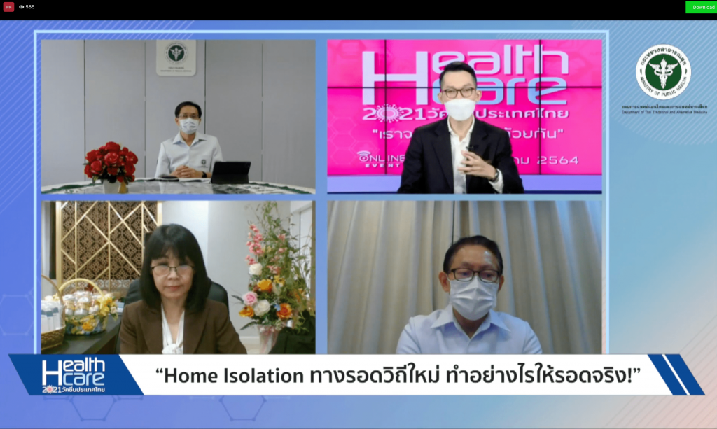 ขณะที่ พญ.อัมพร เบญจพลพิทักษ์ อธิบดีกรมการแพทย์แผนไทยและการแพทย์ทางเลือก กล่าวถึงแนวทางการใช้สมุนไพรในการดูแลผู้ติดเชื้อในระบบ Home Isolation ว่า ในกรณีที่ผู้ติดเชื้อมีร่างกายแข็งแรง แพทย์ผู้ดูแลสามารถพิจารณาจัดยาสมุนไพรให้ได้หลายตัว โดยแบ่งเป็น 4 กลุ่มใหญ่ 1.กลุ่มยาลดไข้ บรรเทาอาการปวดเมื่อย อาทิ ยาเขียวหอม ยาจันทน์ลีลา ยาประสานจันทน์แดง ยาห้าราก 2.บรรเทาอาการในระบบทางเดินหายใจ เช่น น้ำมูกไหล ไอ เจ็บคอ ได้แก่ ยาแก้ไอผสมกานพลู ยาแก้ไอผสมมะขามป้อม ยาแก้ไอผสมมะนาวดอง ยาตรีผลา 3.บรรเทาอาการในระบบทางเดินอาหาร เช่น คลื่นไส้ อาเจียน ท้องเสีย ท้องอืดท้องเฟ้อ ได้แก่ น้ำขิง และ 4.อาการอื่นๆ เช่น อ่อนเพลีย วิงเวียนศีรษะ อาทิ ยาโกฏจุฬารัมภา เป็นต้น อย่างไรก็ดี ต้องย้ำว่ายาเหล่านี้ต้องบอกว่าเป็นยาที่ใช้บรรเทาอาการเท่านั้น และกรณีที่มีการลือกันว่าทานสมุนไพรตัวนั้นตัวนี้แล้วจะป้องกันโควิด-19 ได้ ขอยืนยันว่าขณะนี้ยังไม่มีสมุนไพรตัวใดที่มีการยืนยันว่าป้องกันโควิด-19 ได้ แต่ในแง่การรักษาที่มีการศึกษาแล้วว่าช่วยได้คือฟ้าทะลายโจร และอีกตัวที่มาแรงและอยู่ระหว่างการรวบรวมข้อมูลการศึกษาในมนุษย์คือกระชาย