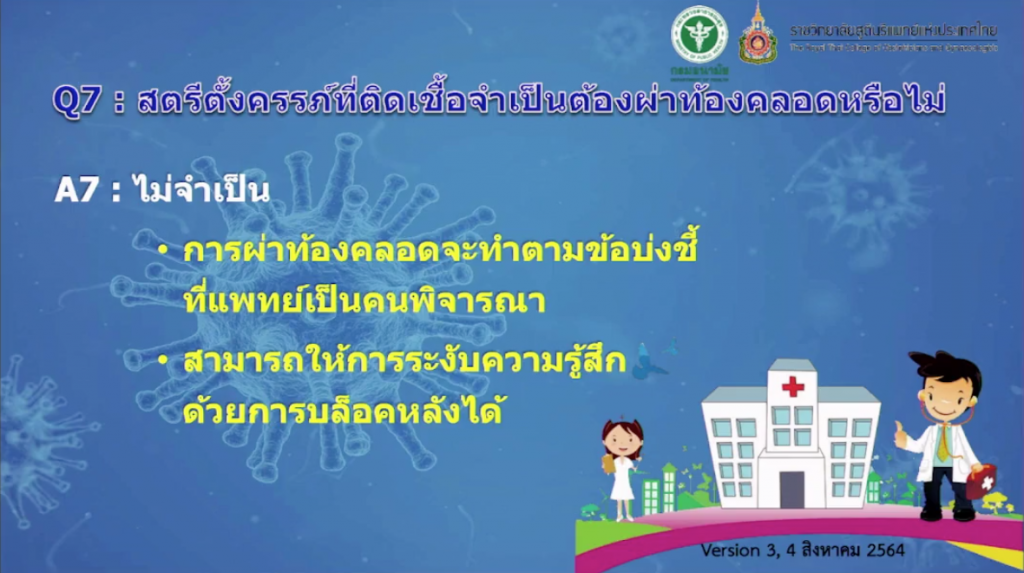 - หญิงตั้งครรภ์ที่ติดเชื้อ ไม่จำเป็นต้องผ่าท้องคลอด จะทำตามที่แพทย์พิจารณา