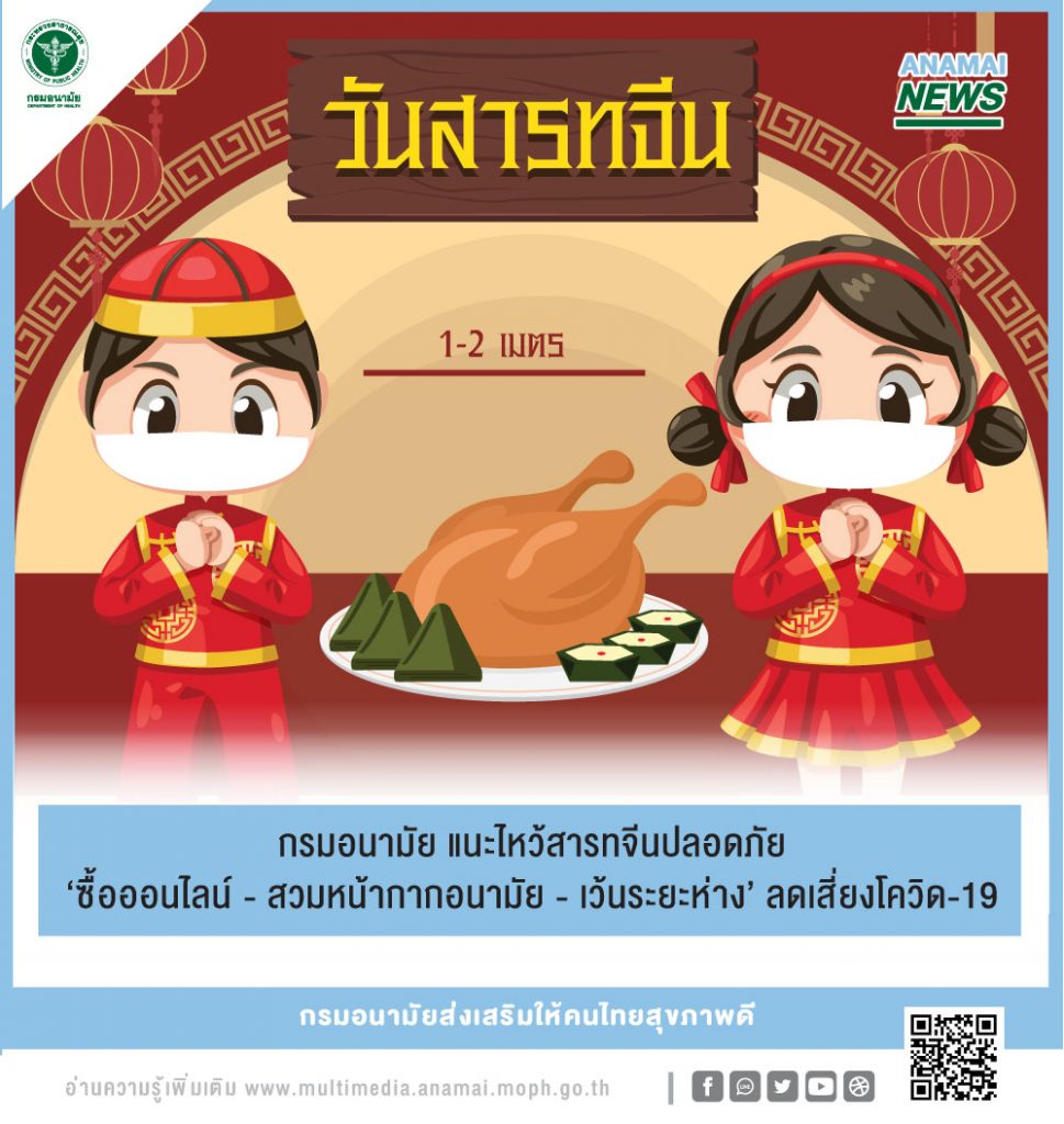 กรุงเทพฯ 20 ส.ค. – กรมอนามัย แนะไหว้สารทจีนปลอดภัย “ซื้อออนไลน์-สวมหน้ากากอนามัย-เว้นระยะห่าง” ลดเสี่ยงโควิด-19
